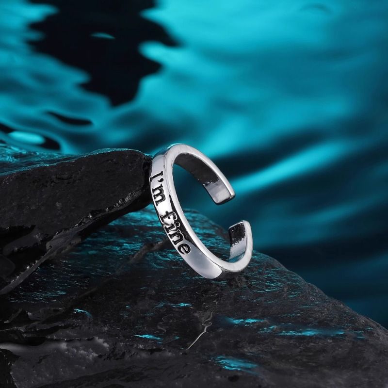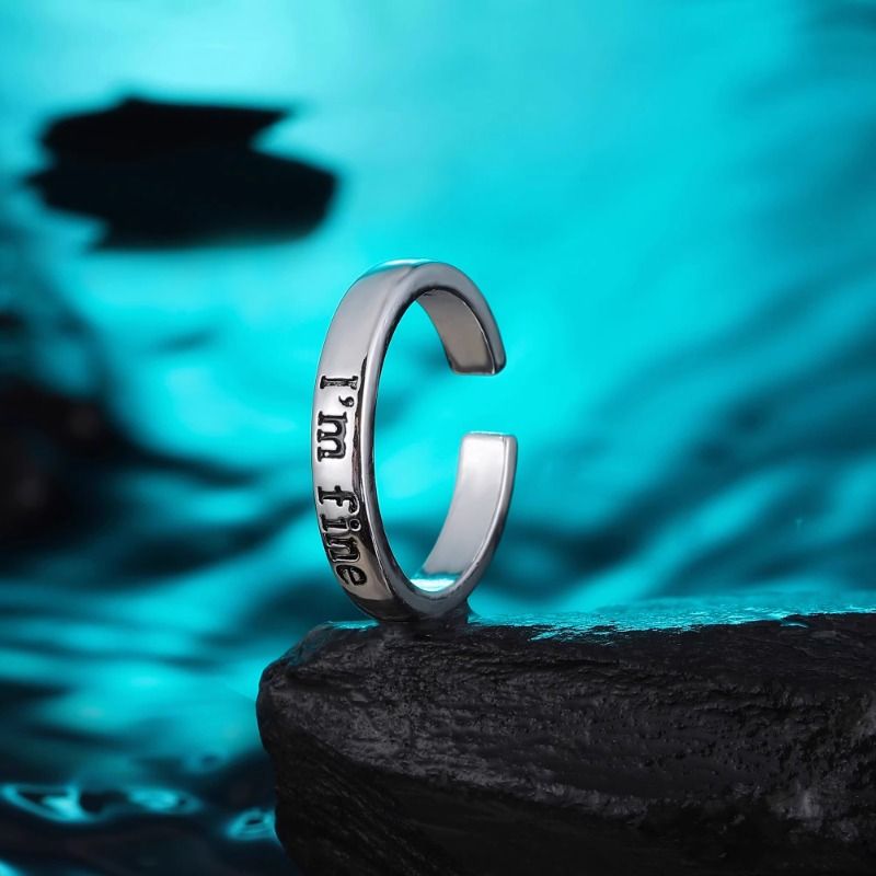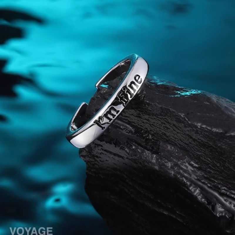 i'm fine拯救我戒指女情侣对戒开口可调节指环男轻奢小众素圈尾戒
