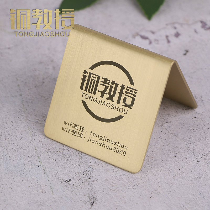 铜教授 黄铜二维码指示牌店铺装饰收银台定制个性扫码点单牌摆件