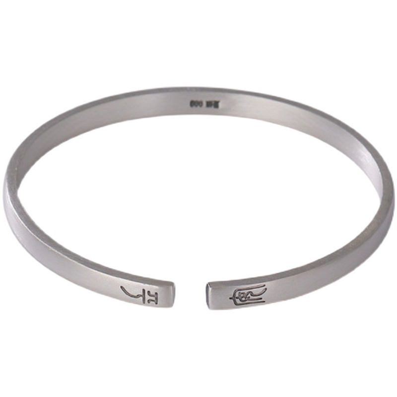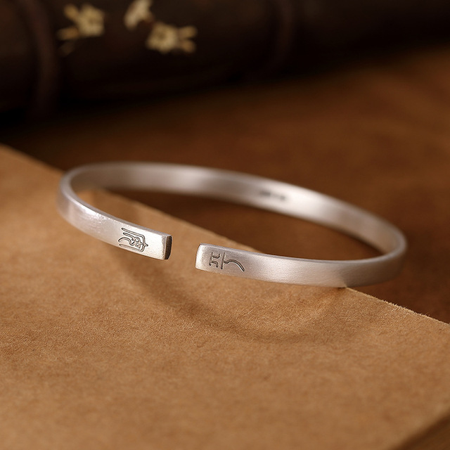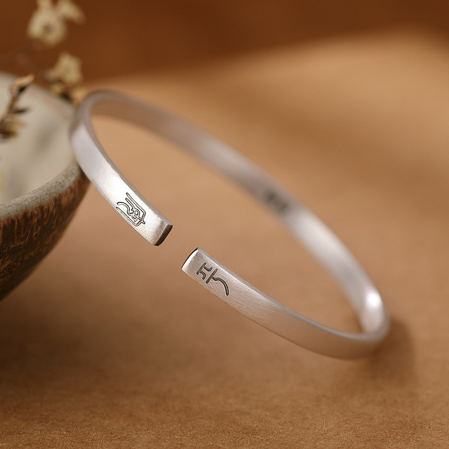 足银999复古哑光做旧平安喜乐百搭开口男女款纯银手镯手环