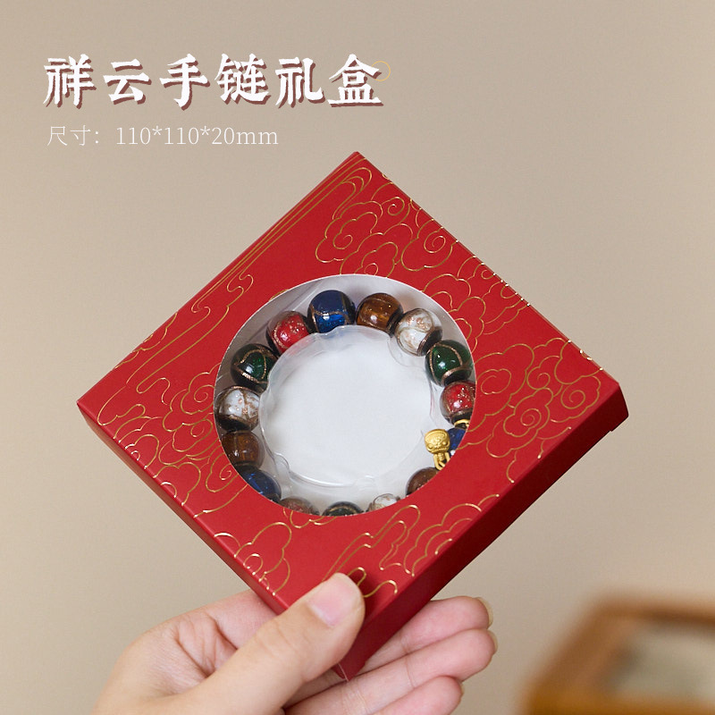新款方纸空白红色礼盒祥云吹塑模具手链盒挂件盒博物馆同款礼盒
