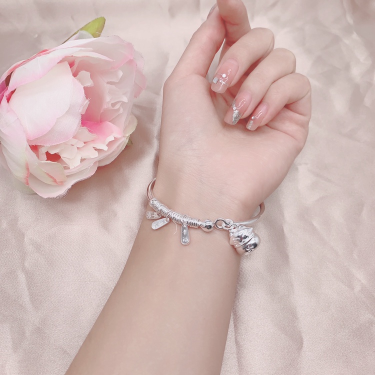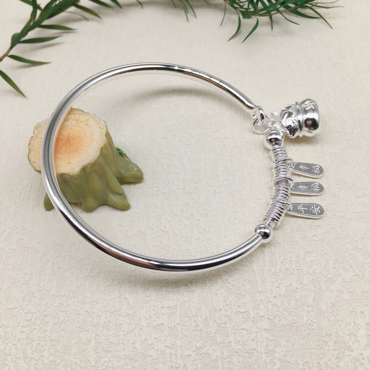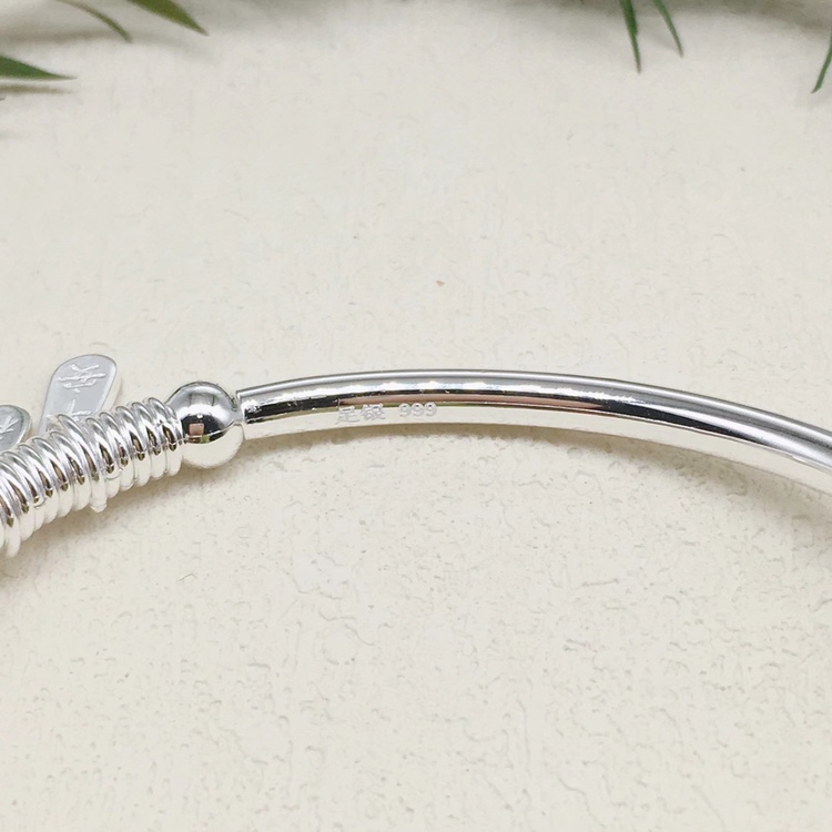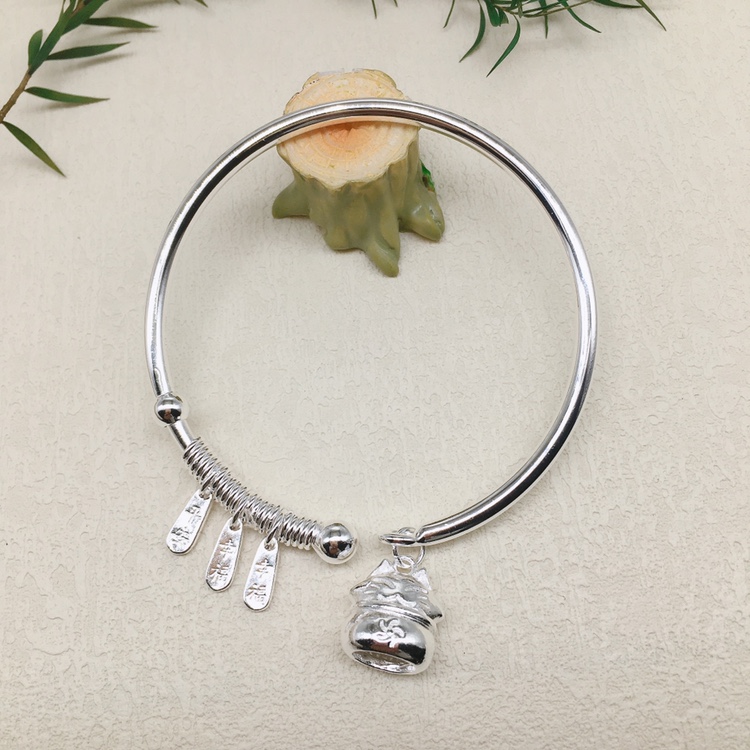 胜银·新款实心亮面纯银手镯开口处带健康平安幸福招财猫足银999