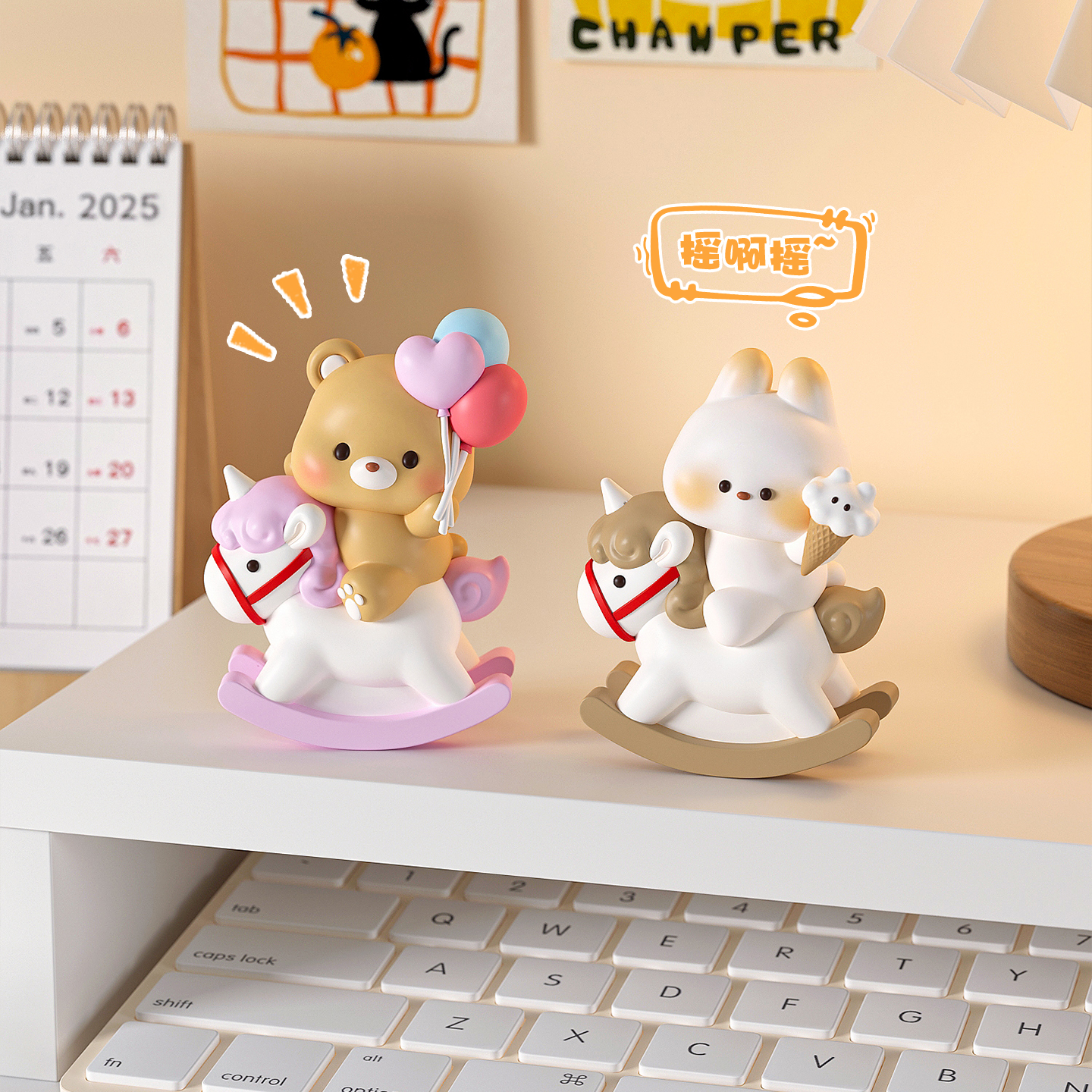 卡通动物摇摇马小摆件办公室桌面装饰品工位情绪稳定神器生日礼物