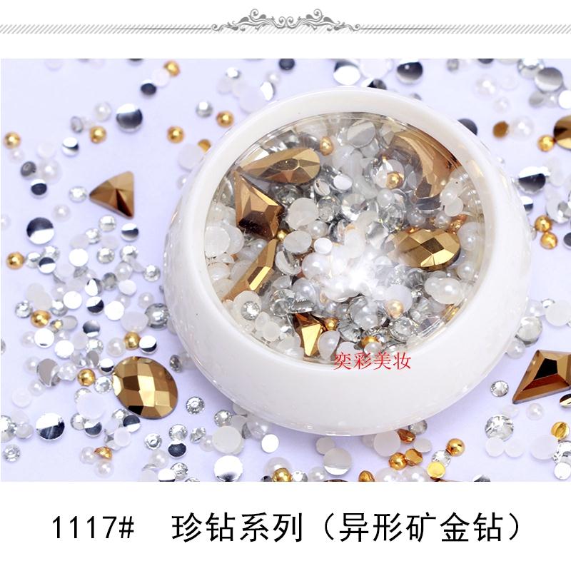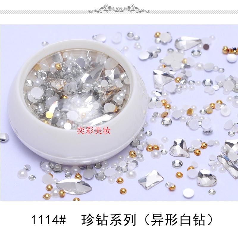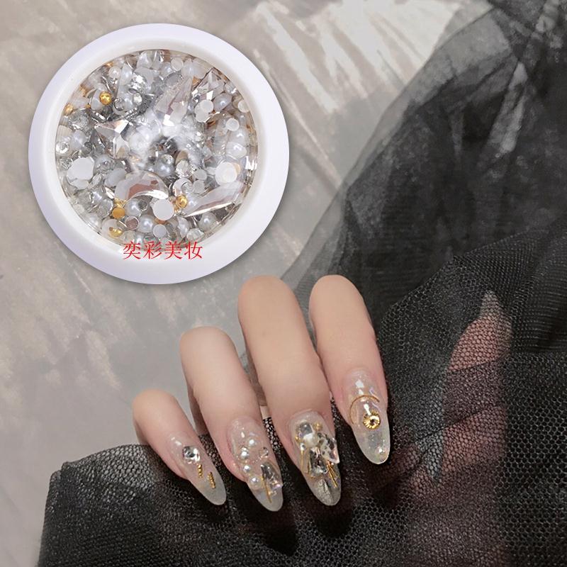 美甲钻超闪网红水钻混装饰品异形钻平底钻纯白珍珠金属铆钉指甲钻
