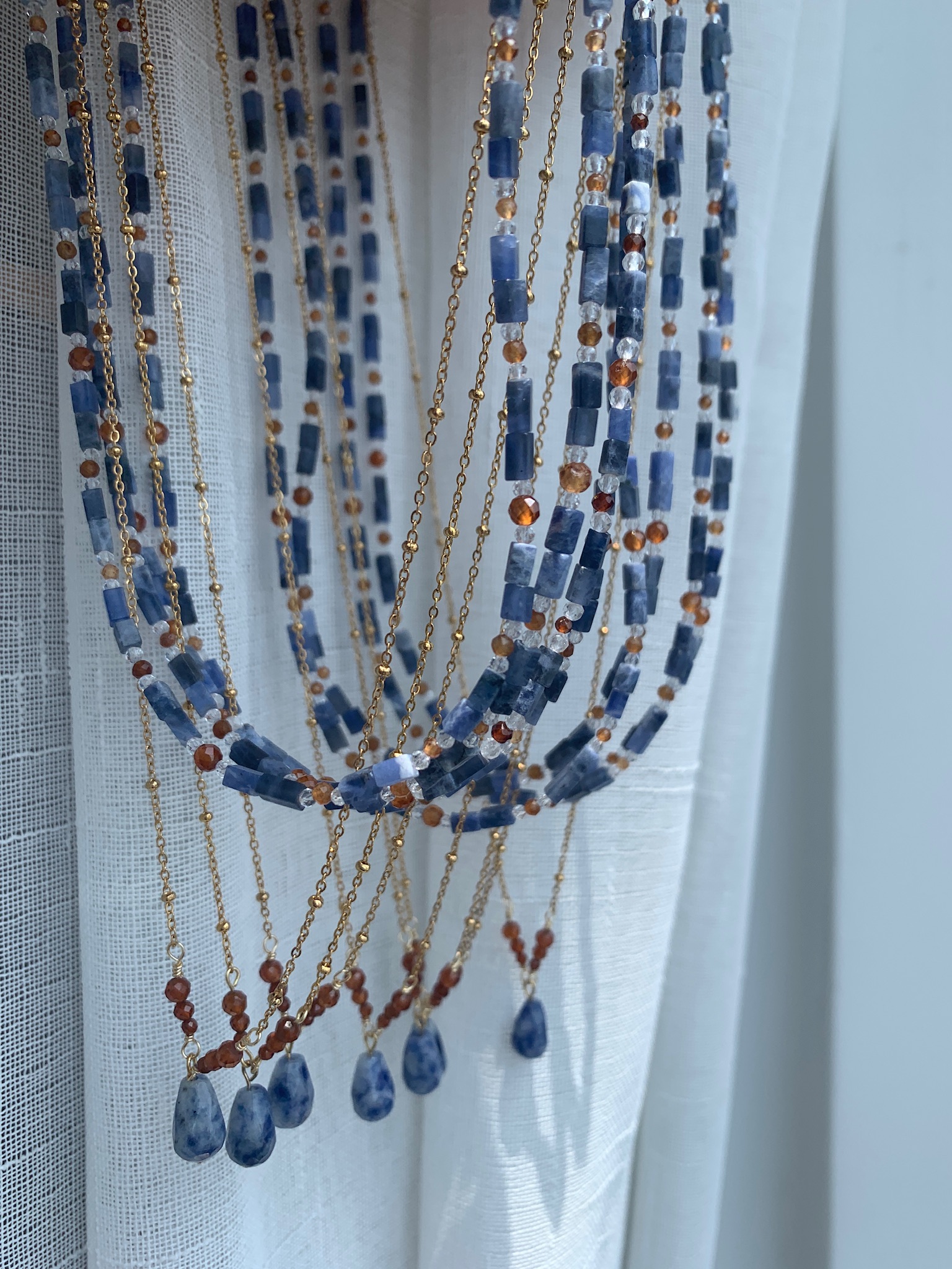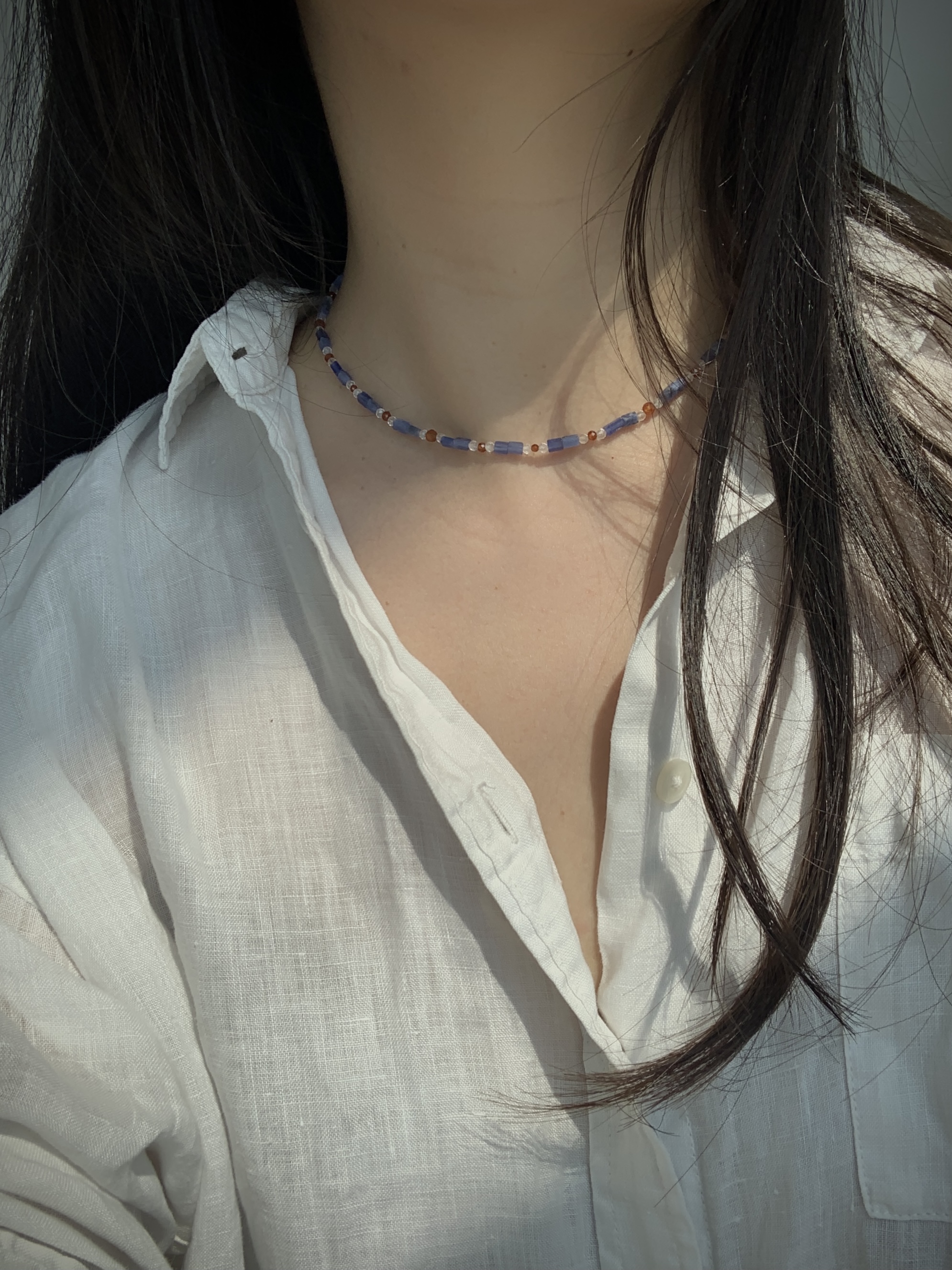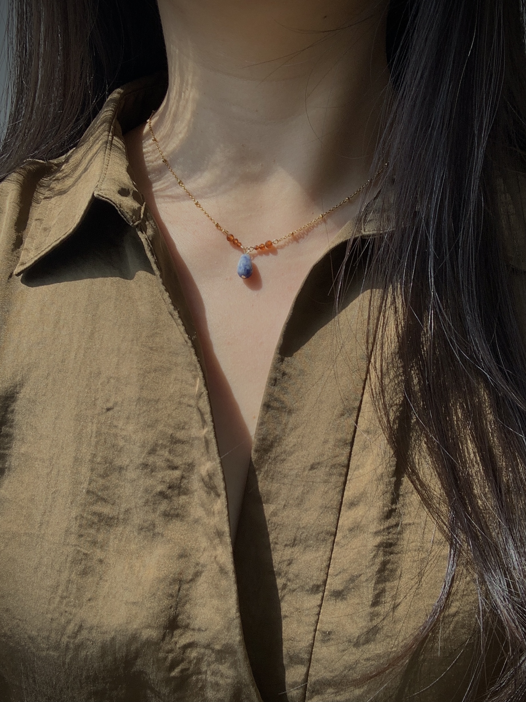 期夜月丨熙提饰物所原创设计手作项链新中式蓝天然石套链定制订做