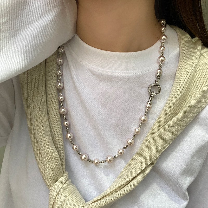 珍珠曼塔玫瑰项链感小众轻奢百搭锁骨链微镶卡扣毛衣链女