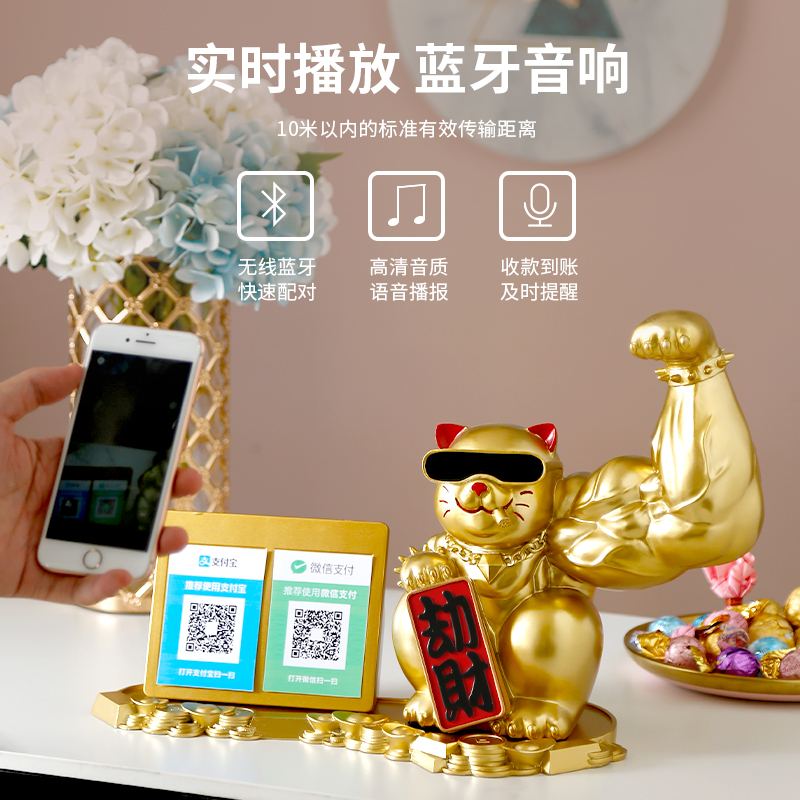 麒麟臂招财猫摆件前台收银台收钱二维码语音播报器健身房开业礼物