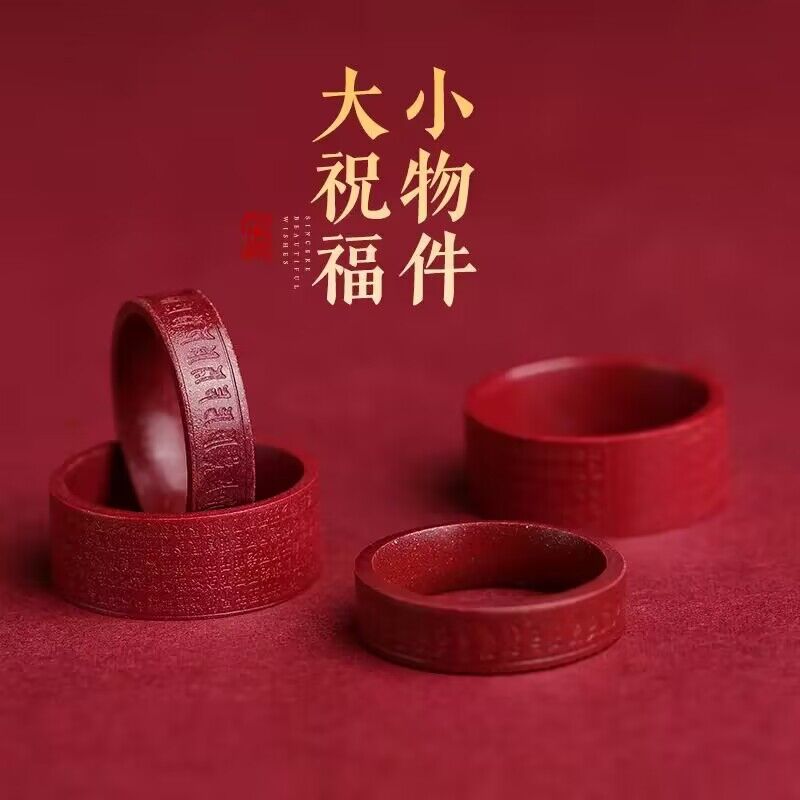 高含量原矿朱砂心经戒指女款本命年六字真言指环男尾戒礼物情侣