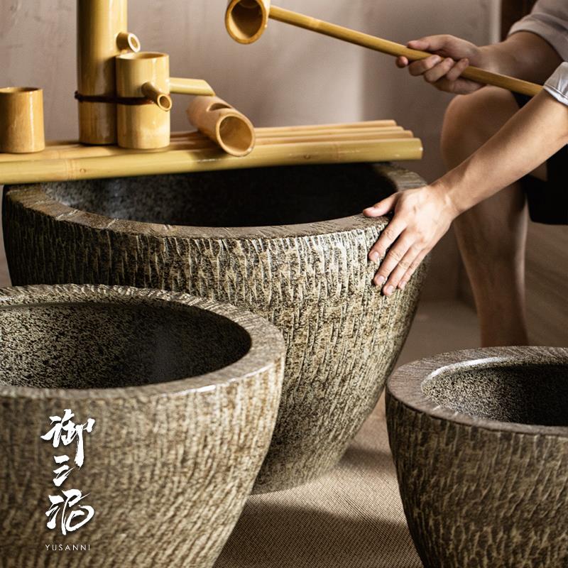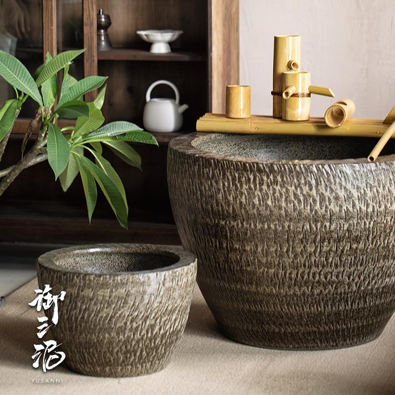 鱼缸落地摆件庭院园林现代陶瓷平口大缸粗陶手工圆坛水缸大花盆