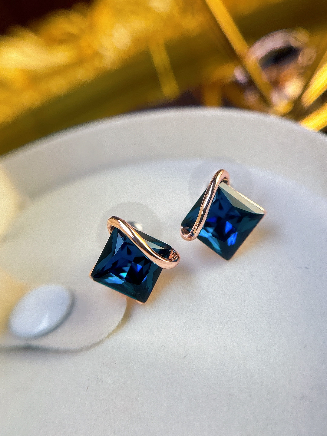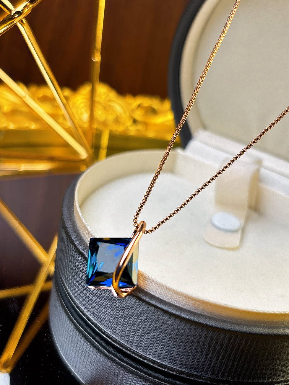 妾毛衣新款之意精致蓝水晶项链耳环女宝色925银针耳钉二件套冷淡
