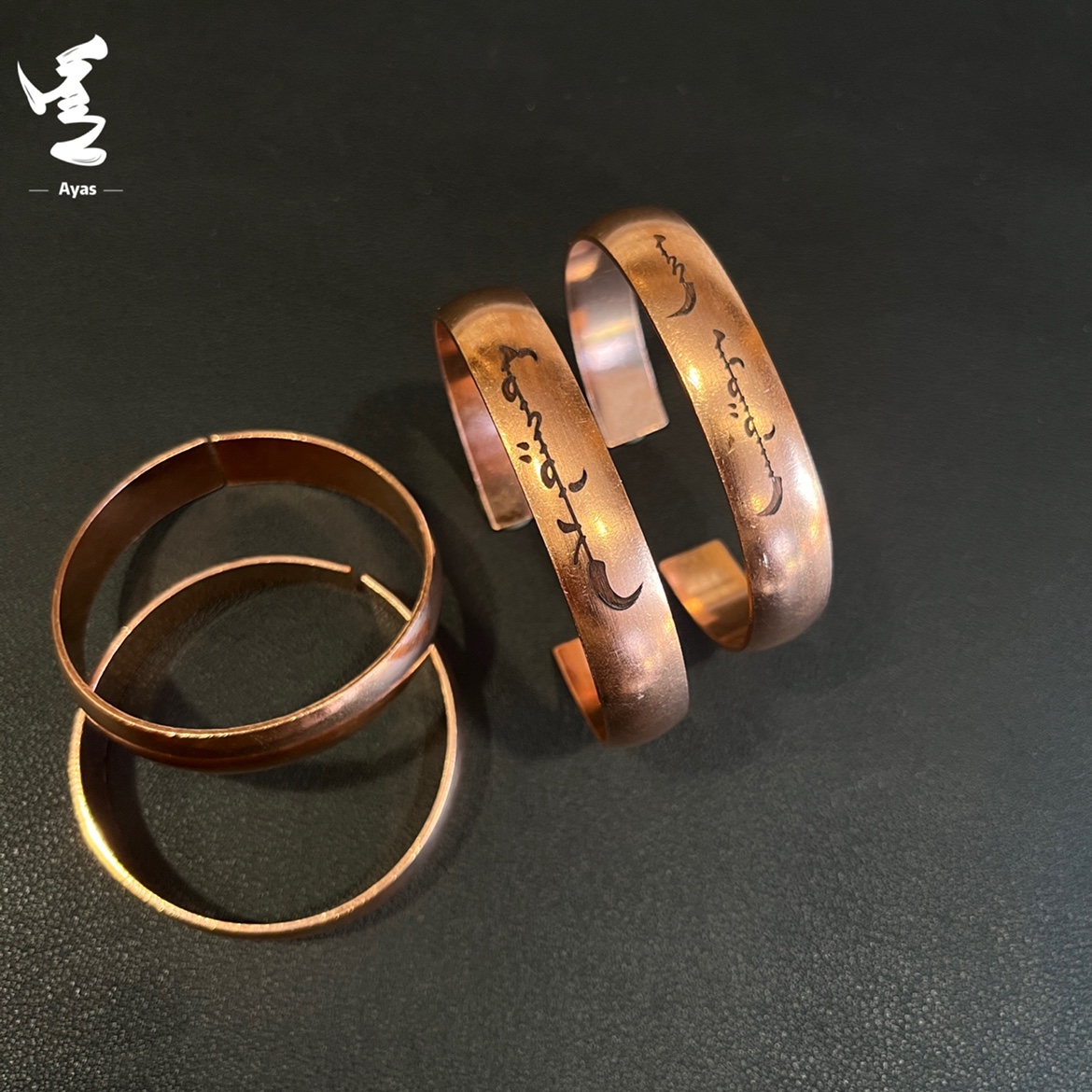 纯手工制作男女纯铜镯子红铜手镯12mm宽40克重男士铜手镯蒙文铜戒