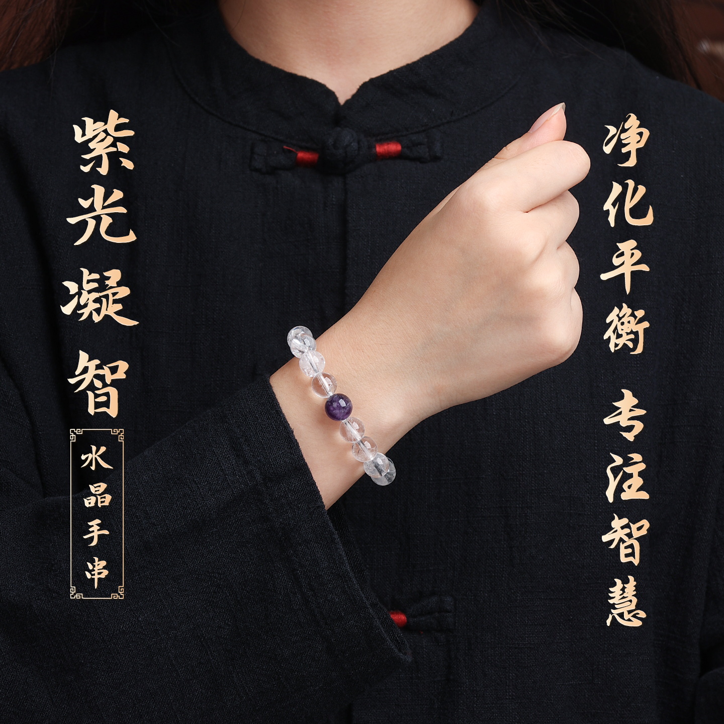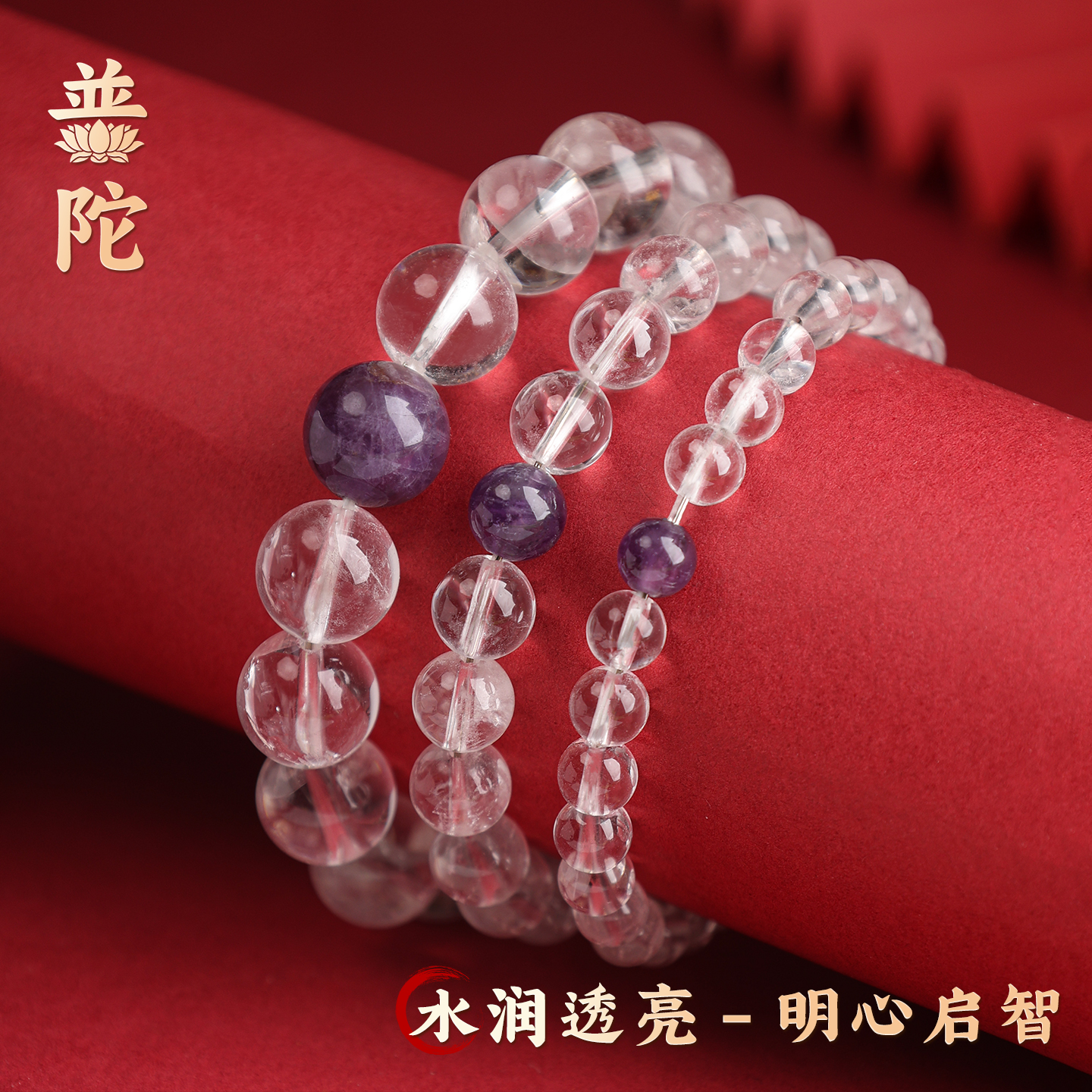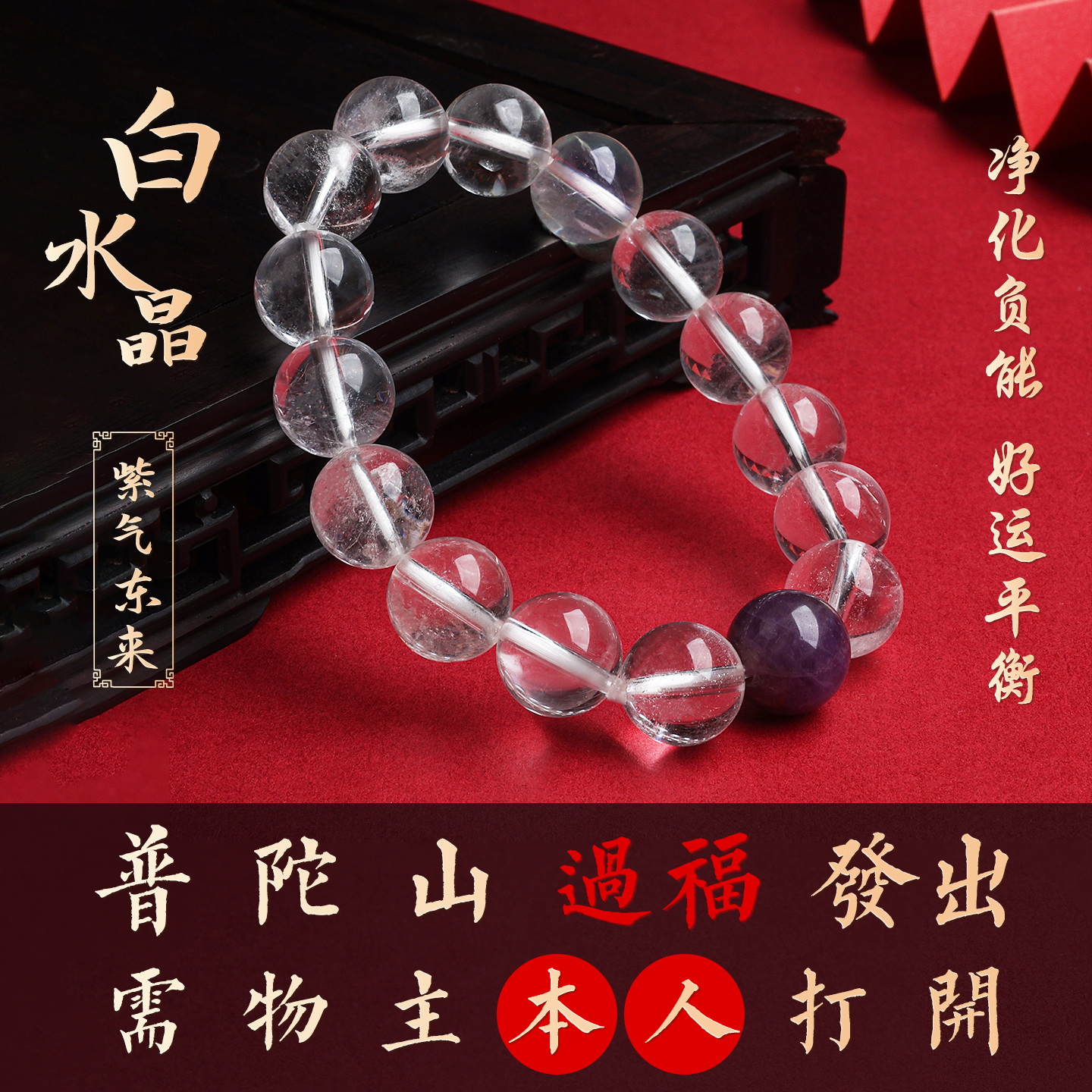 【普陀山官方】天然白水晶手串女白色水晶手链生日礼物七夕送女友