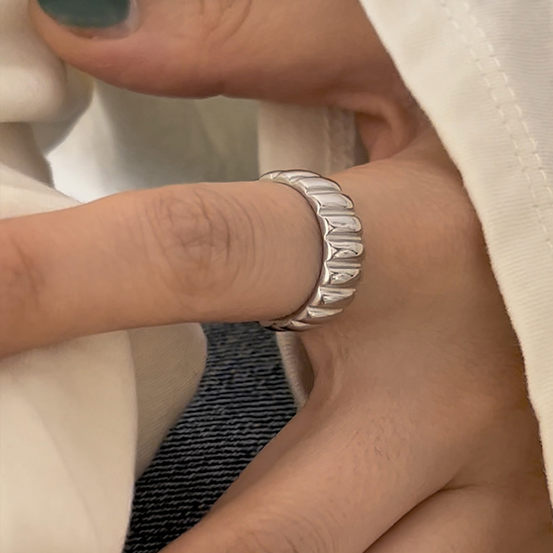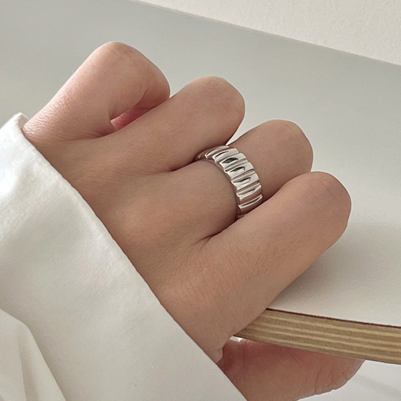 925纯银高级感风琴戒指女新款韩国光面ins小众高级感凹凸食指指环