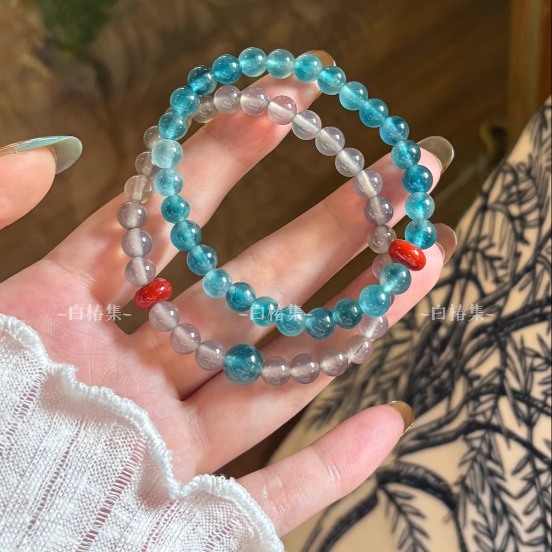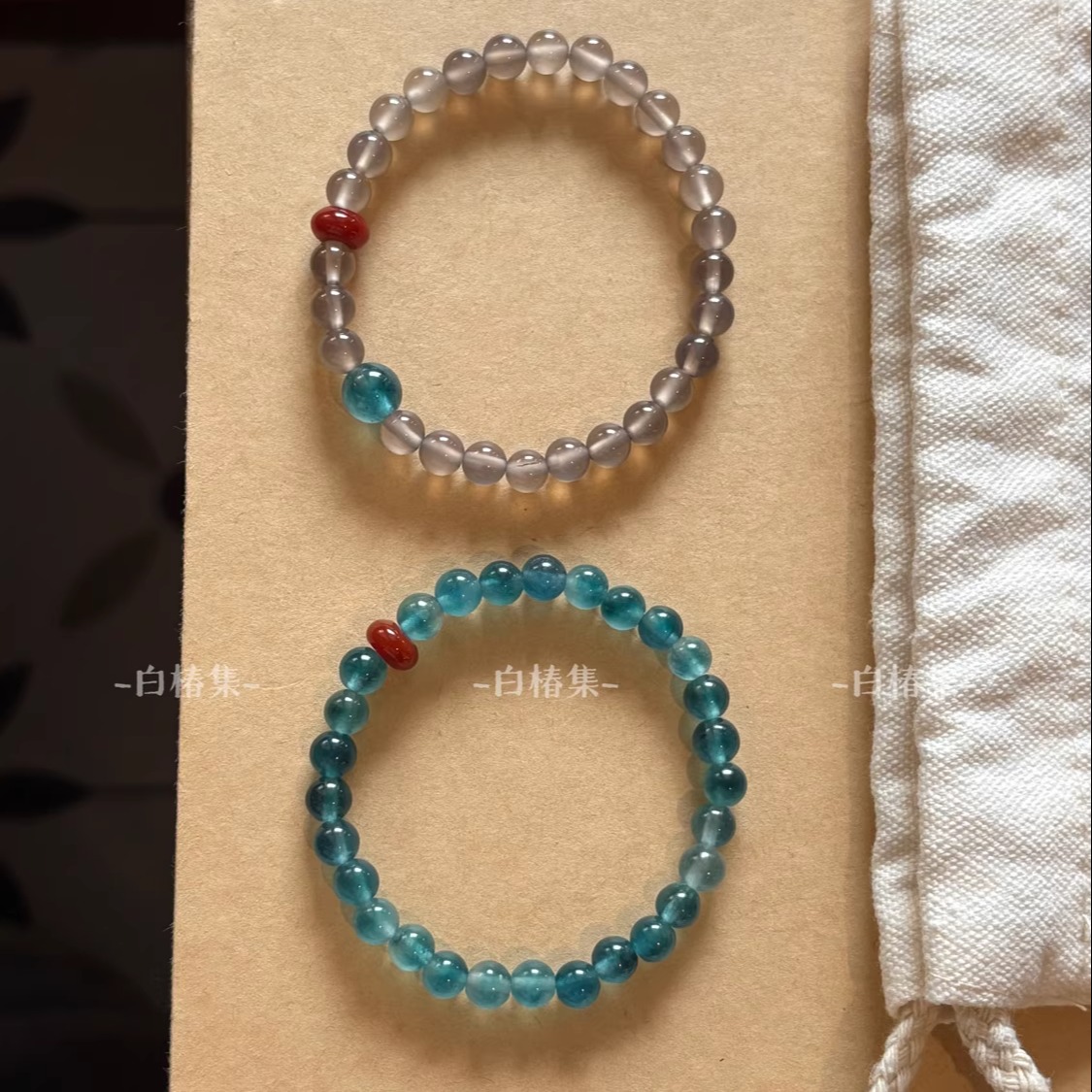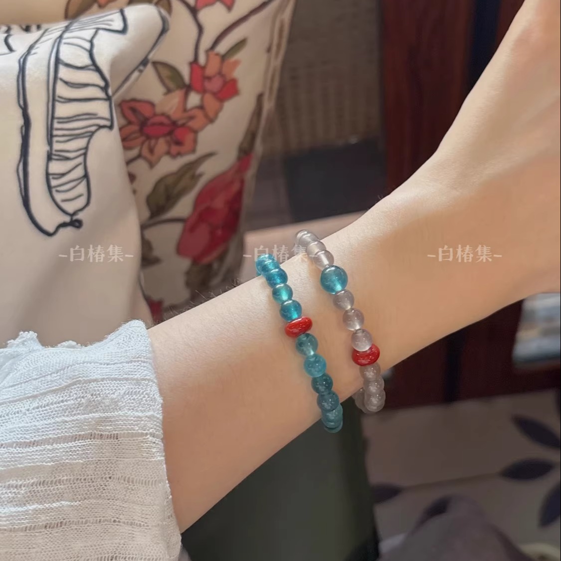 原创新中式玛瑙手链小众设计国风禅意复古冰飘花玉石弹力叠戴手串
