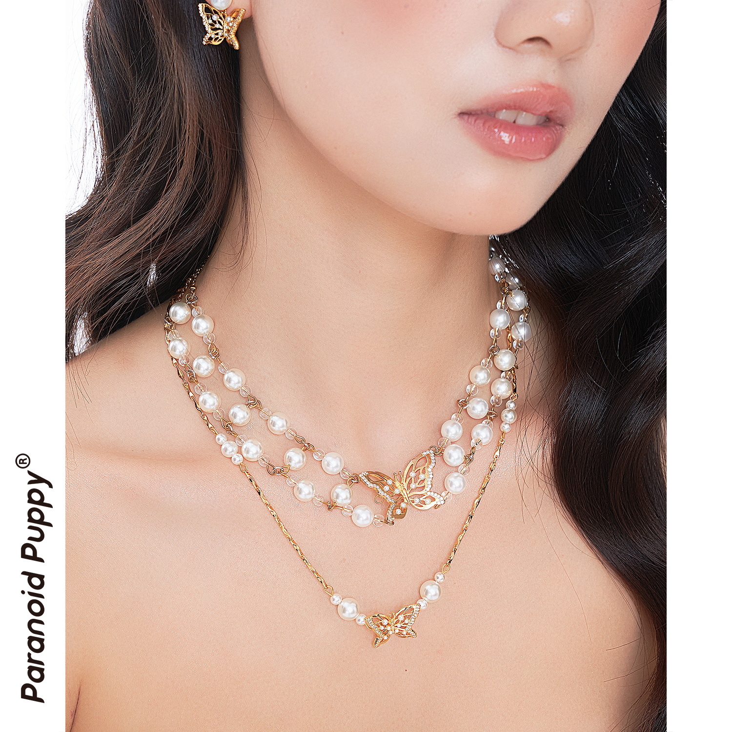 PP饰品 《鎏》法式轻熟古典风珍珠choker秋冬金色蝴蝶设计感项链