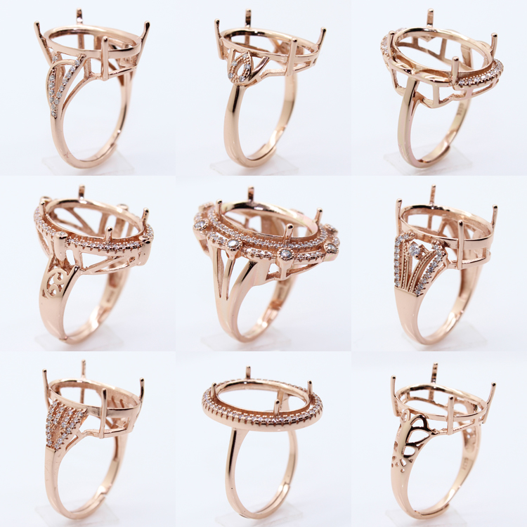925纯银戒指空托 大尺寸 精工代加工镶嵌18k金戒托 13*18mm活口