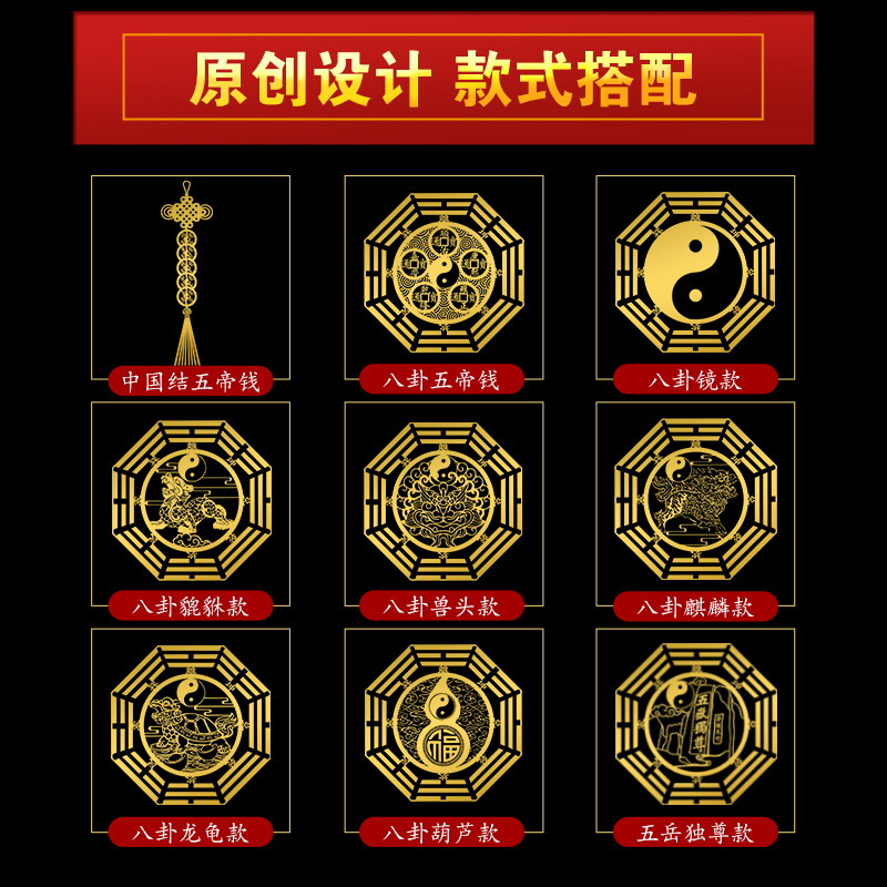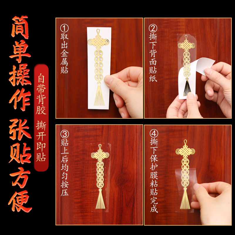 五帝钱门对门挂件大门对厨房卧室厕所隐形门贴吉祥结手机金属贴纸