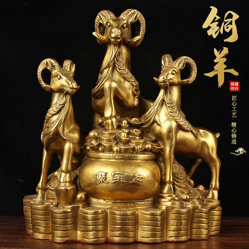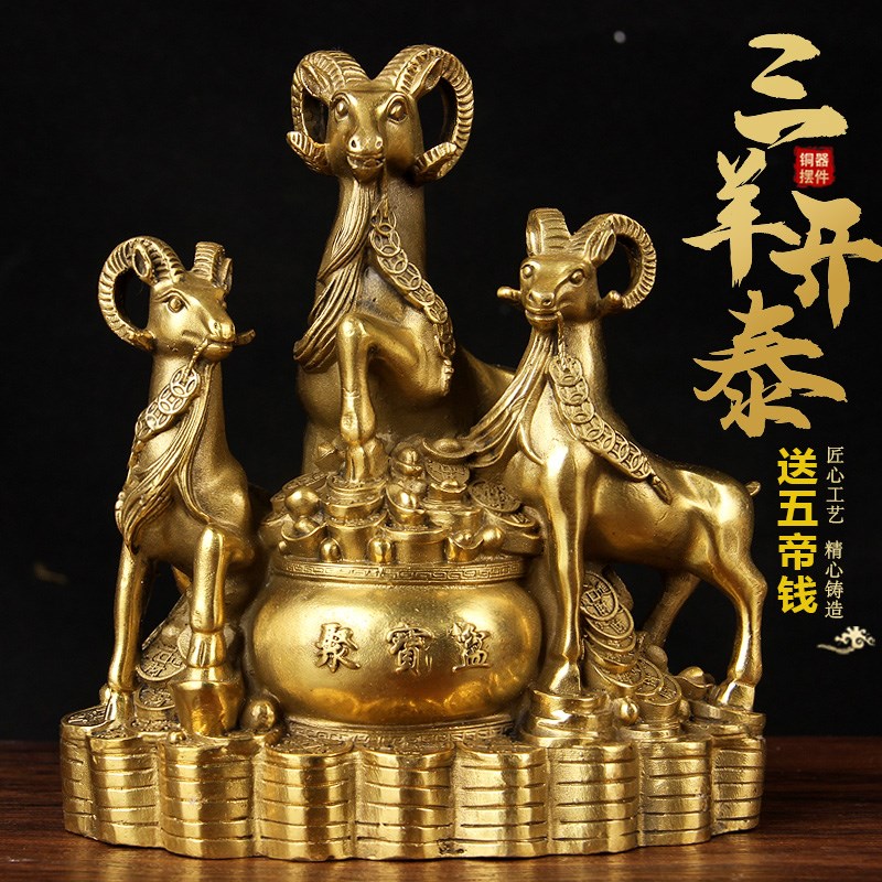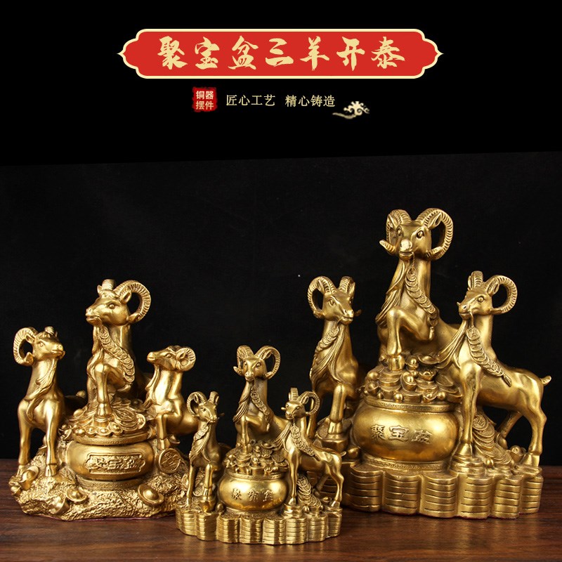 铜聚宝盆三羊开泰 铜三羊开泰摆件 铜羊摆件
