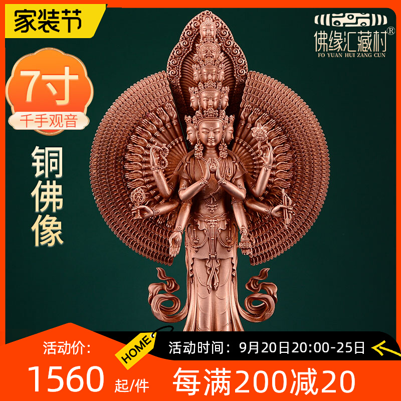 藏村室内千手观音铜铜像居家桌面观音菩萨双层莲花底座摆件7寸