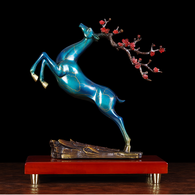 黄铜梅花鹿摆件家居客厅电视柜装饰品乔迁新居送礼品一鹿发财摆设