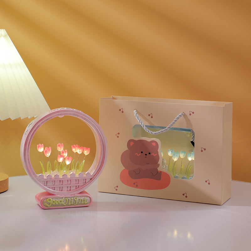 创意几何diy花海郁金香小夜灯桌面装饰摆件生日礼物女生520情人节