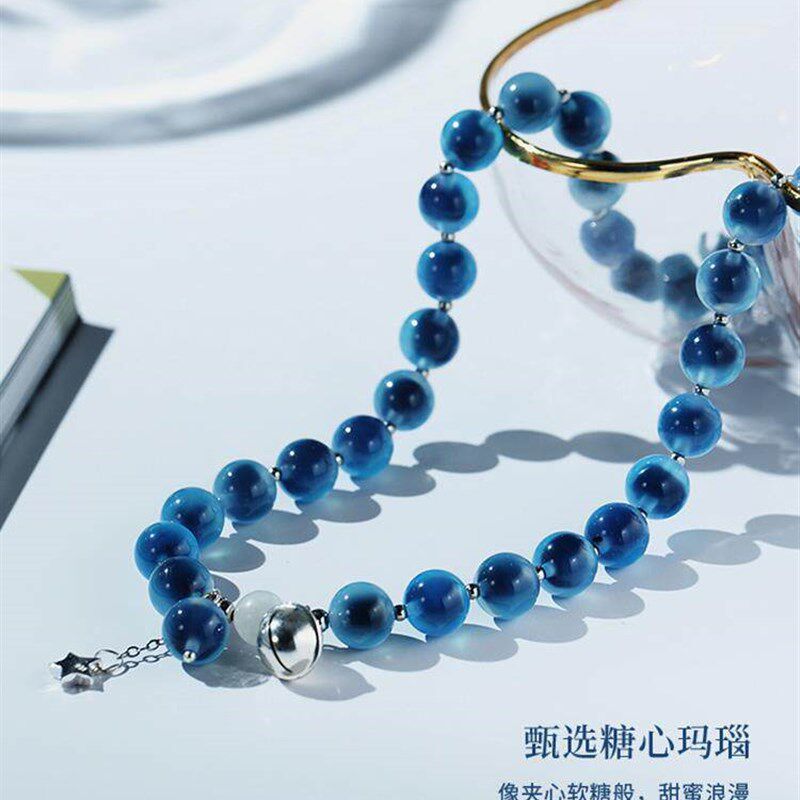 天然糖心玛瑙手链 蓝色双层转运珠 女性水晶饰品 时尚手链推荐