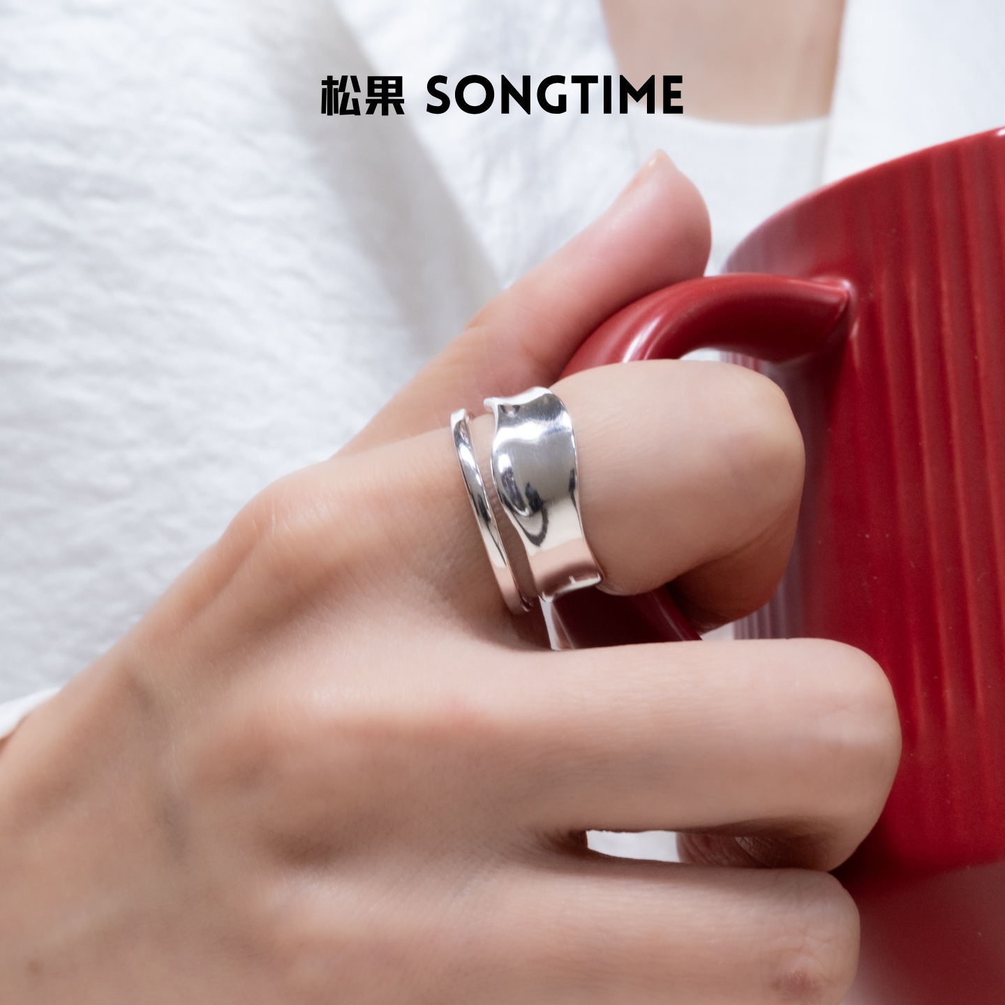 双层不规则光面波浪纯银戒指时尚重工高级感小众设计夸张食指指环