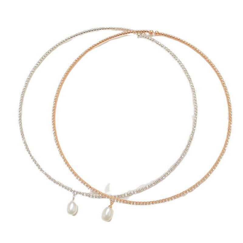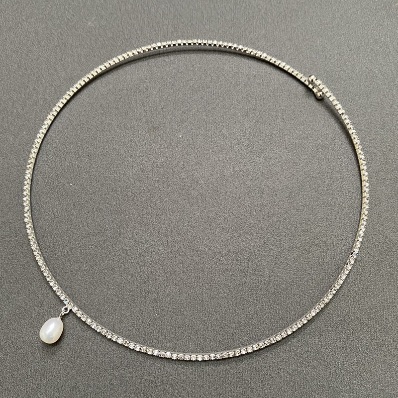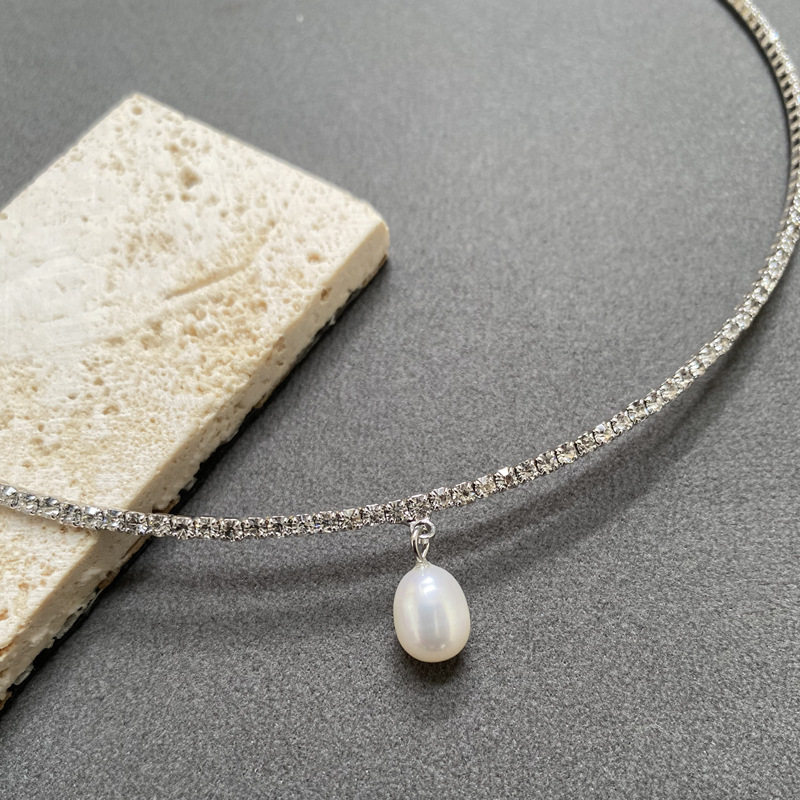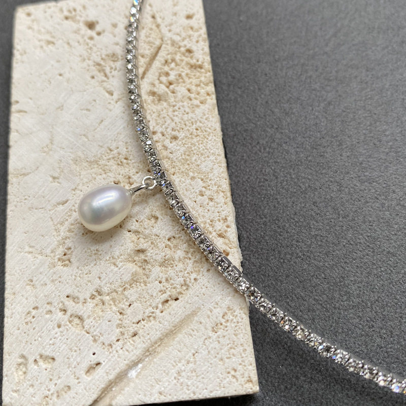 XKDDCT韩版项圈镶嵌满钻项链新潮气质闪烁劲链天然淡水珍珠吊坠9