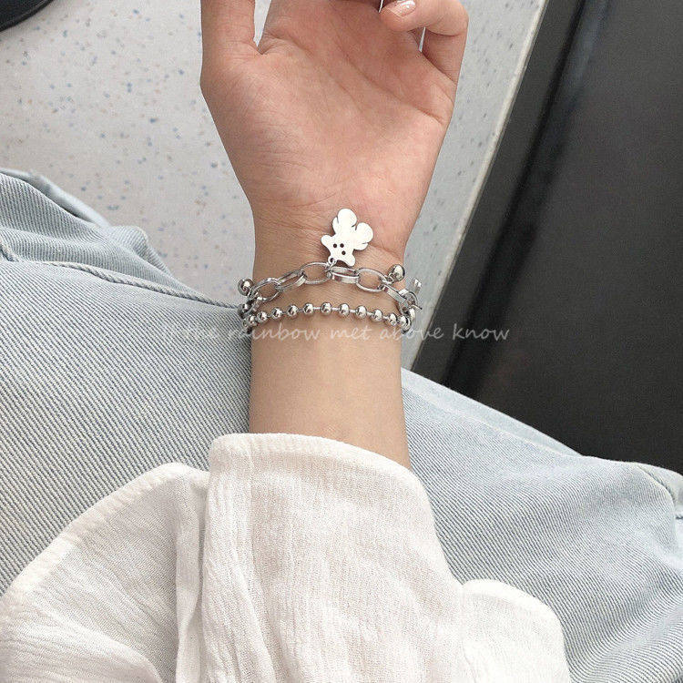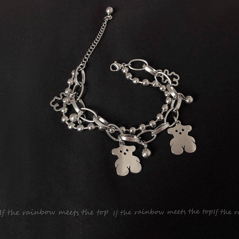 钛钢小熊手链女ins小众设计闺蜜情侣学生手串复古个性嘻哈手饰品