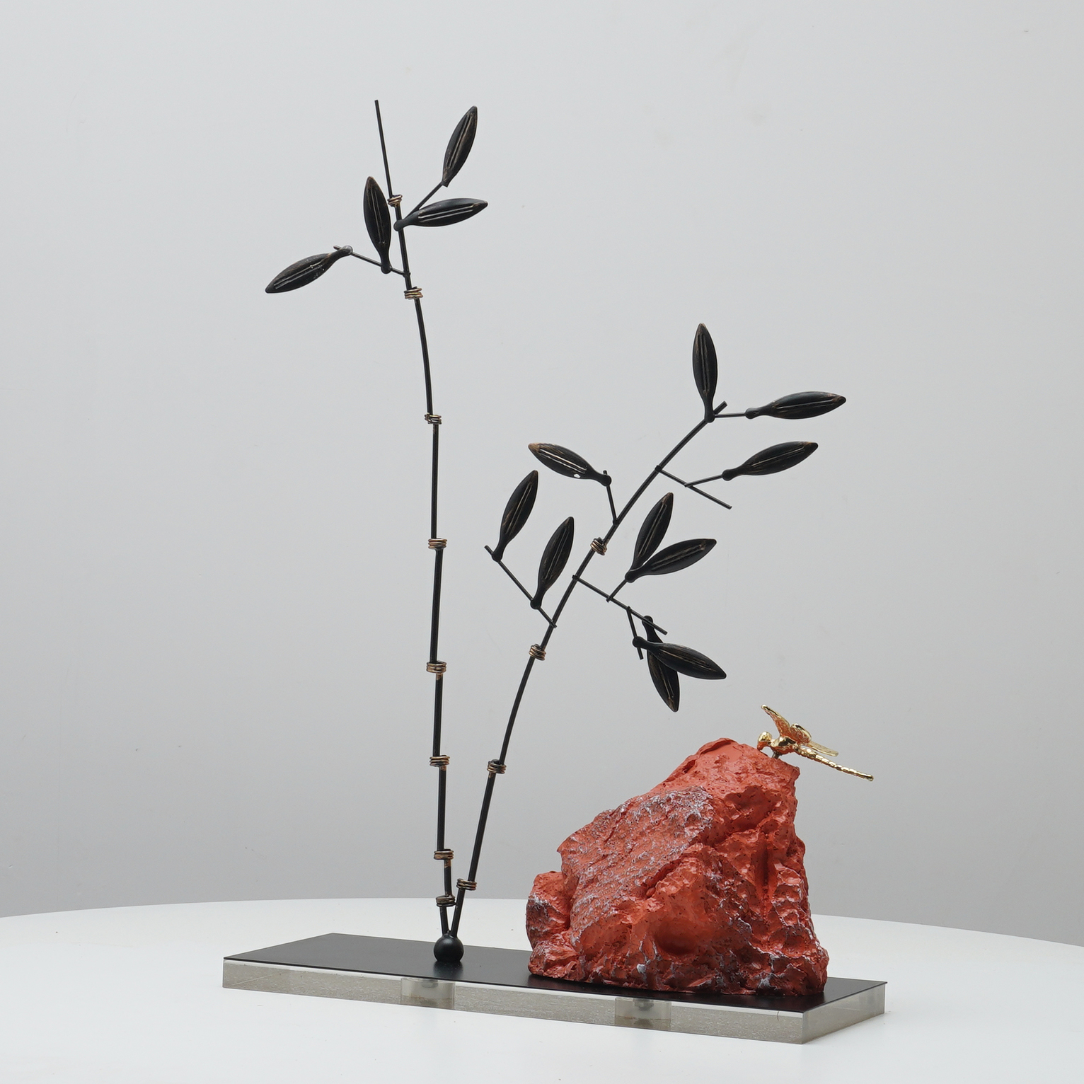 现代新中式铁艺山竹叶装饰品摆件家居客厅电视柜玄关创意艺术摆设