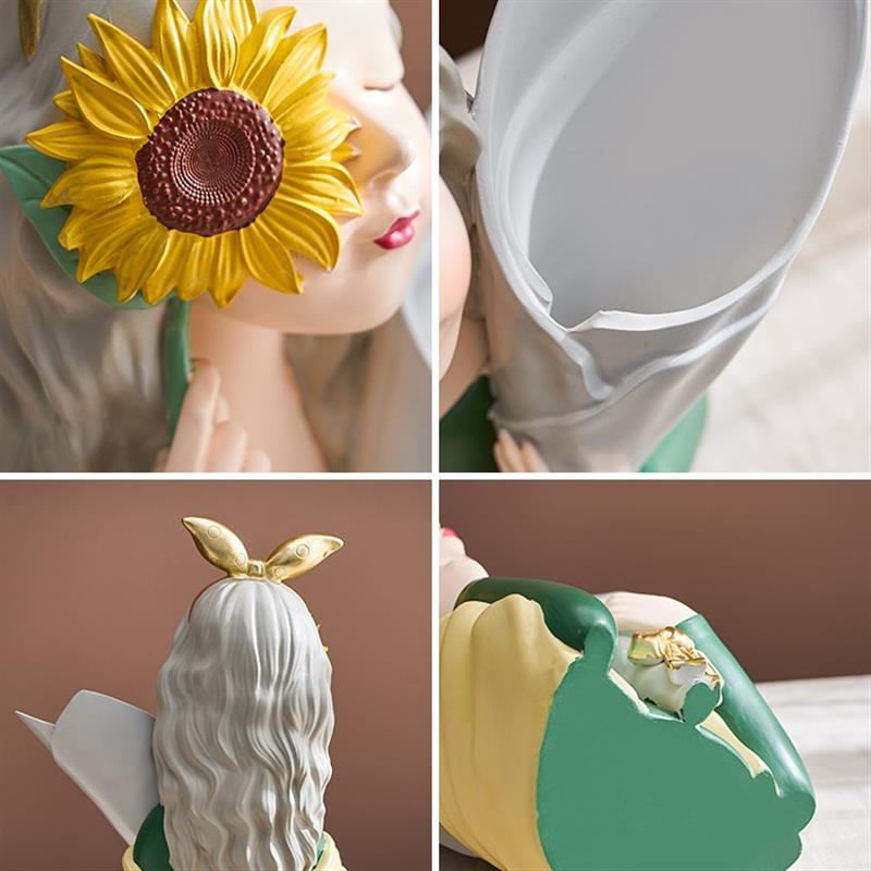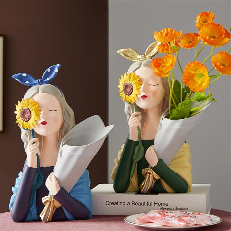极速北欧b向日葵干燥花女孩摆件花插花家居捧抱花电视柜人像花瓶