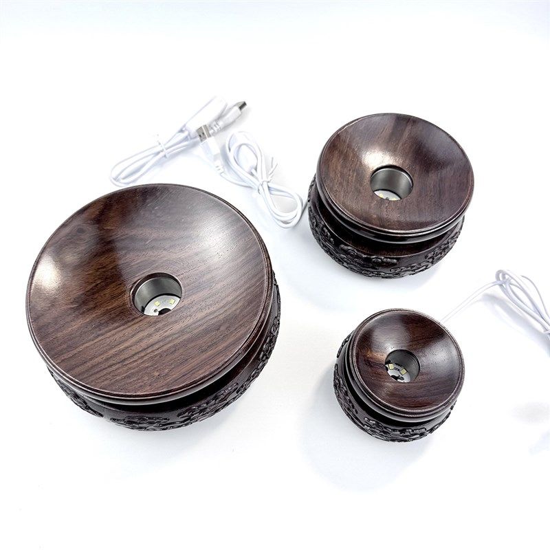 水晶球底座实木双层旋转高档球座灯座球形黑檀木祥云木质底座摆件