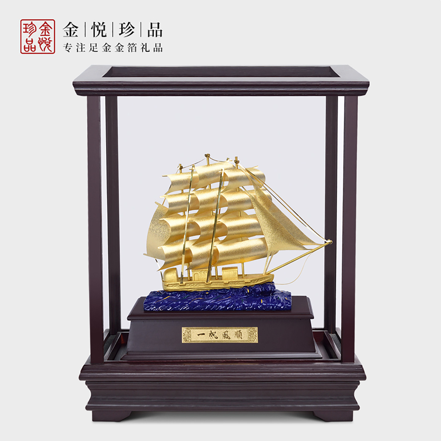 足金金箔一帆风顺帆船摆件开业礼品招财商务办公室桌客厅乔迁新居