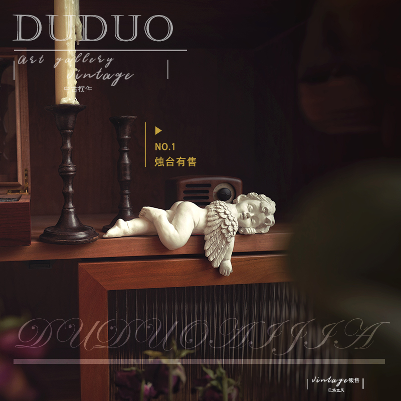 都多爱家美式欧式天使少女雕塑树脂工艺品摆件客厅复古桌面装饰
