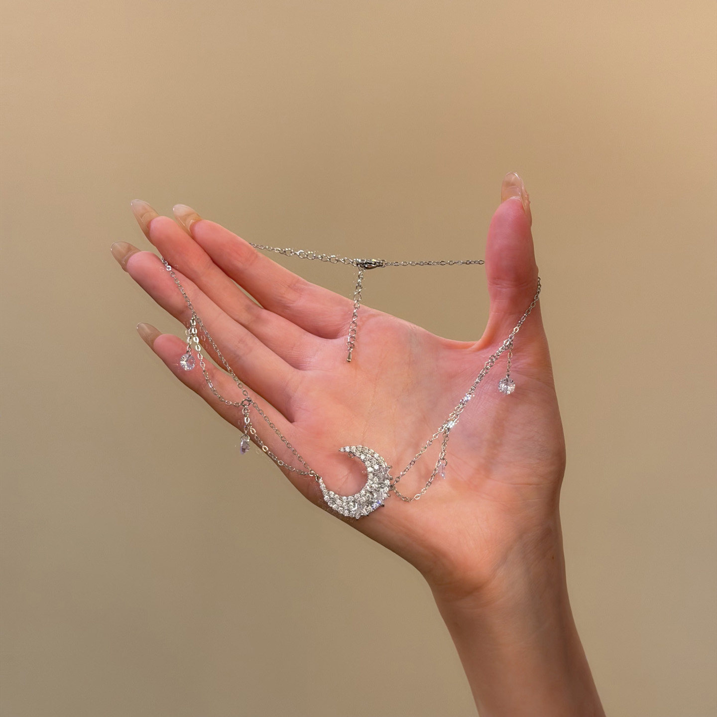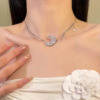 HEY TAO复古闪钻锆石月亮吊坠项链女款轻奢清冷感颈链配饰锁骨链