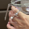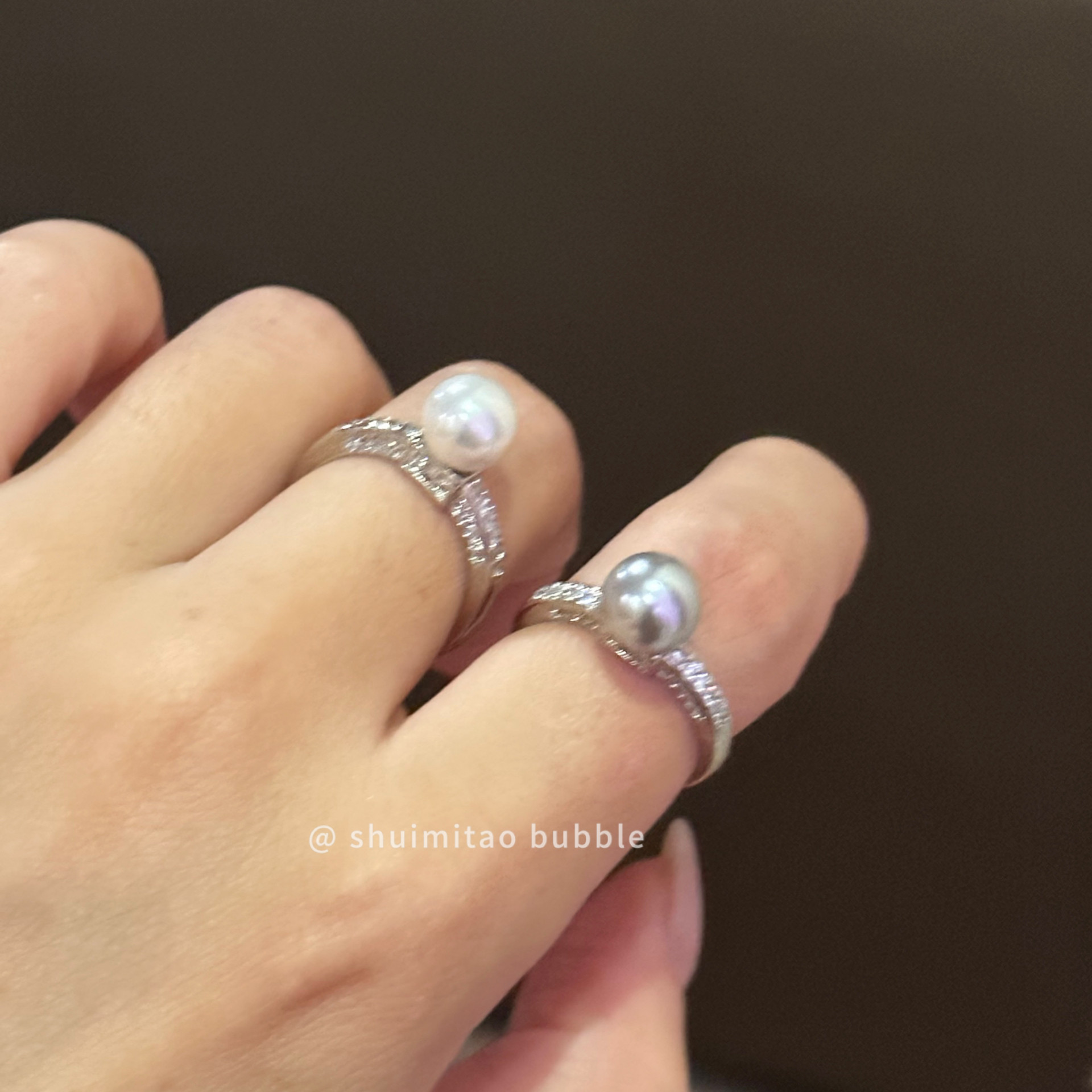 极光灰色澳白色单颗珍珠开口戒指女可调节时尚个性精致中指食指