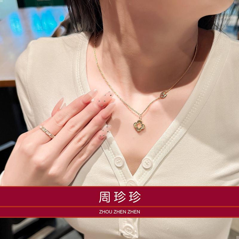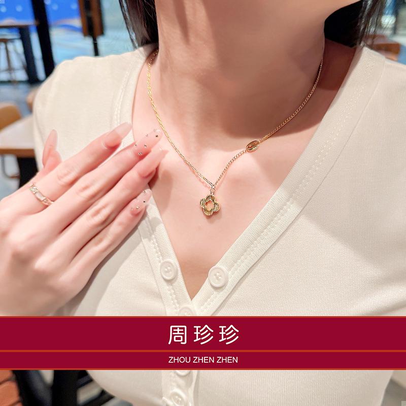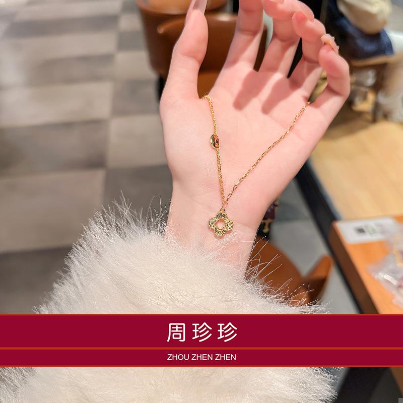 周珍珍18K镭射镂空四叶草项链女轻奢小众设计感时尚百搭锁骨链颈