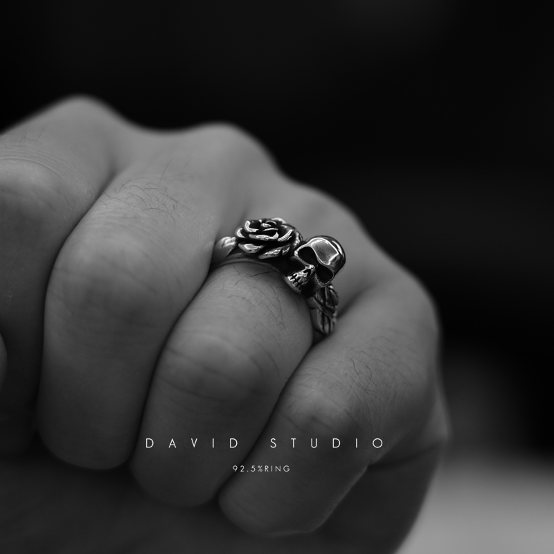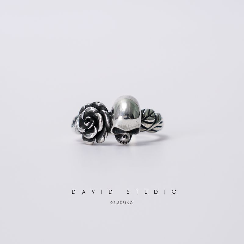 David手工925纯银玫瑰花骷髅男女情侣werkstatt munchen戒指食指
