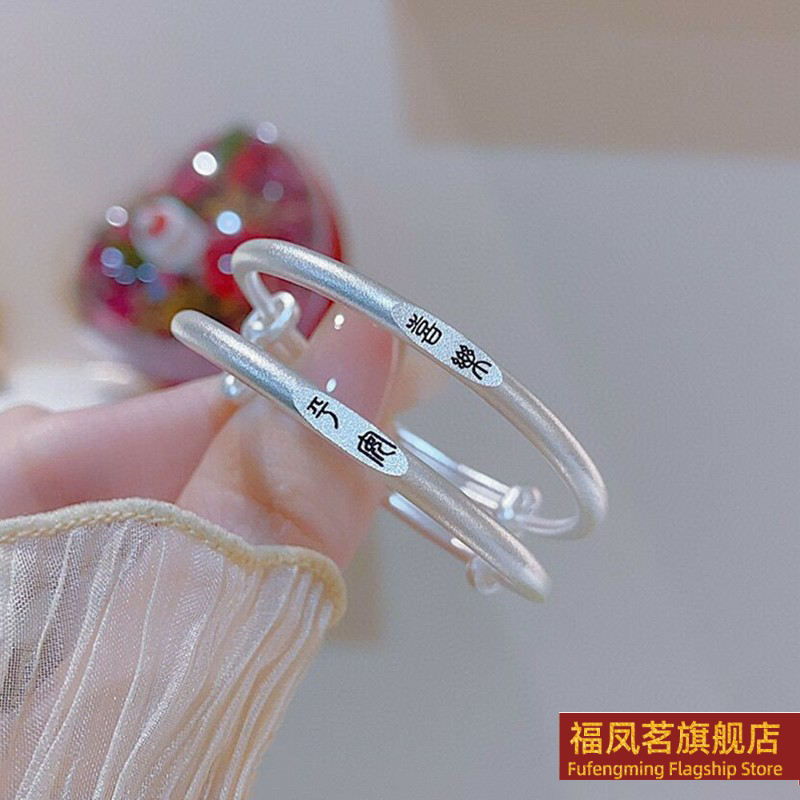 正生足银9999古法平安喜乐草莓纯银手镯男女宝宝儿童婴儿满月礼物