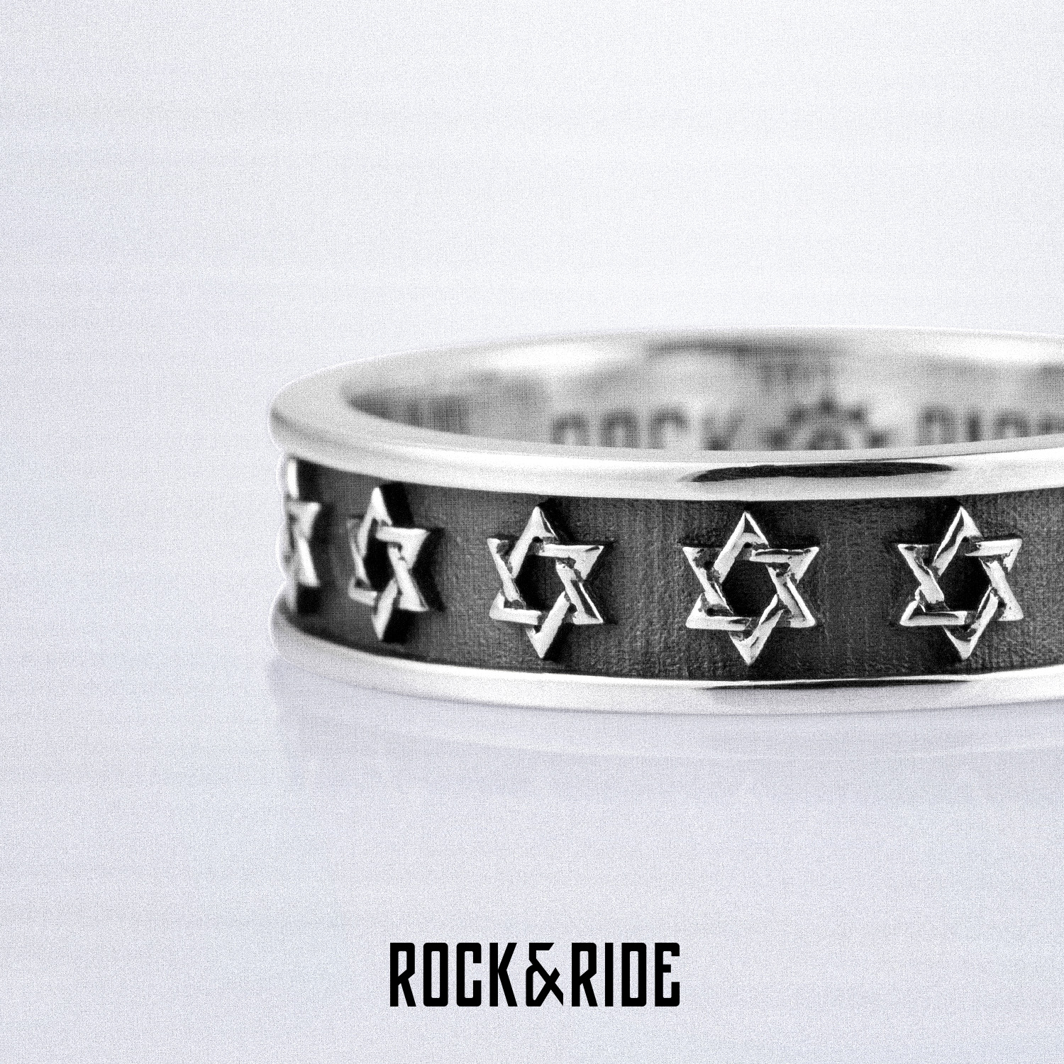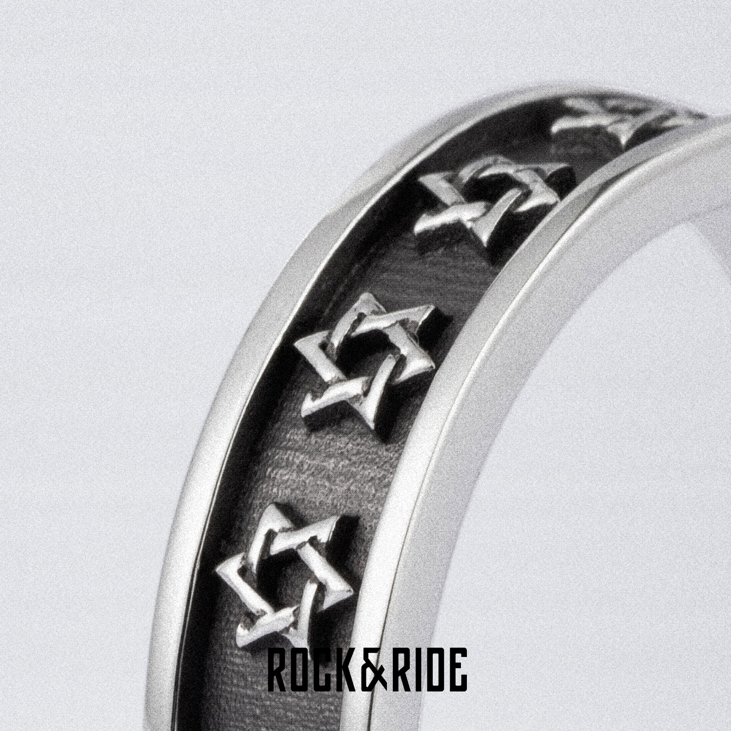 ROCKRIDE 镀钨六芒星戒指 925纯银男款潮情侣对戒个性