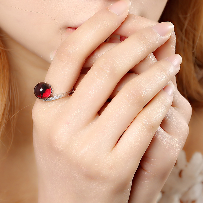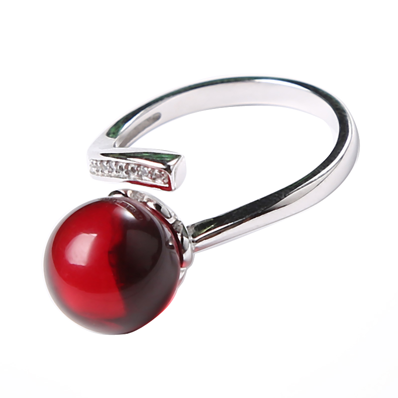老蜜蜡戒指女款血珀手饰琥珀S925银活口可调节鸡油黄圆珠指环二代