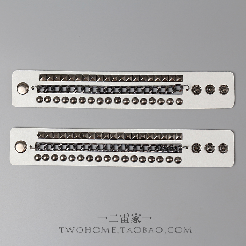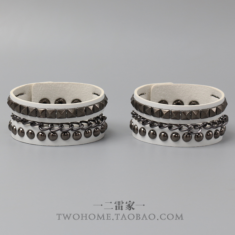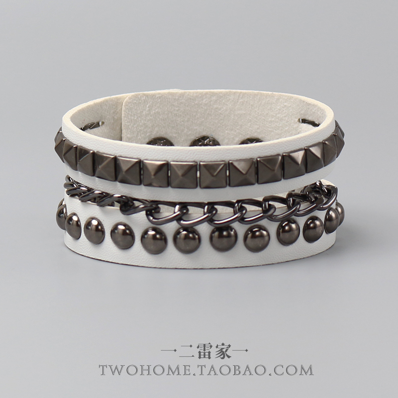 白色朋克风方圆双层铆钉链条皮质手环哥特式手链镂空手镯个性腕带