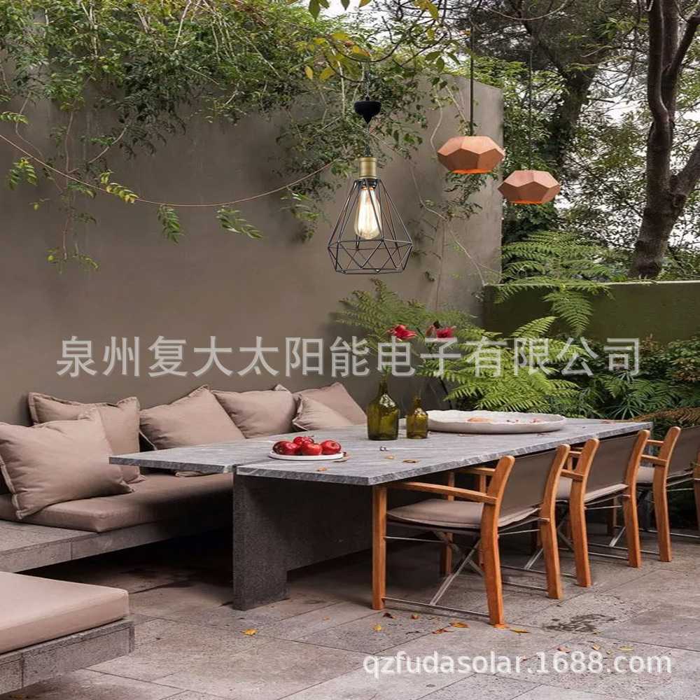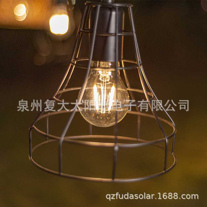 新品太阳能欧式简约灯笼复古钨丝灯泡线条铁艺灯笼户外花园庭院灯