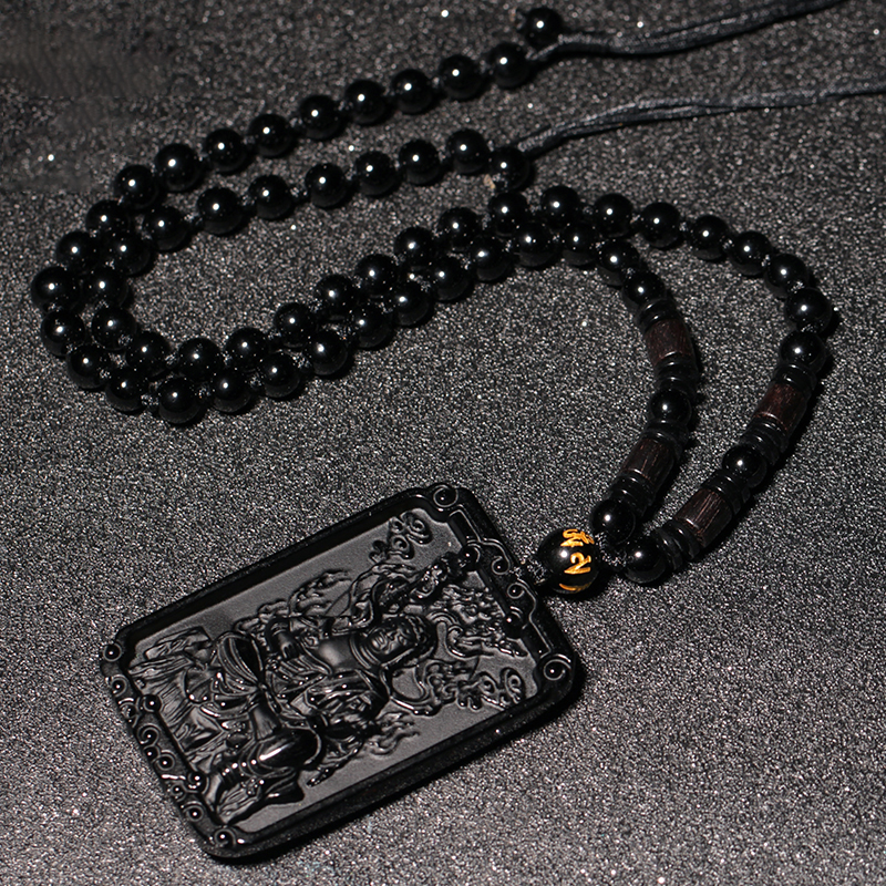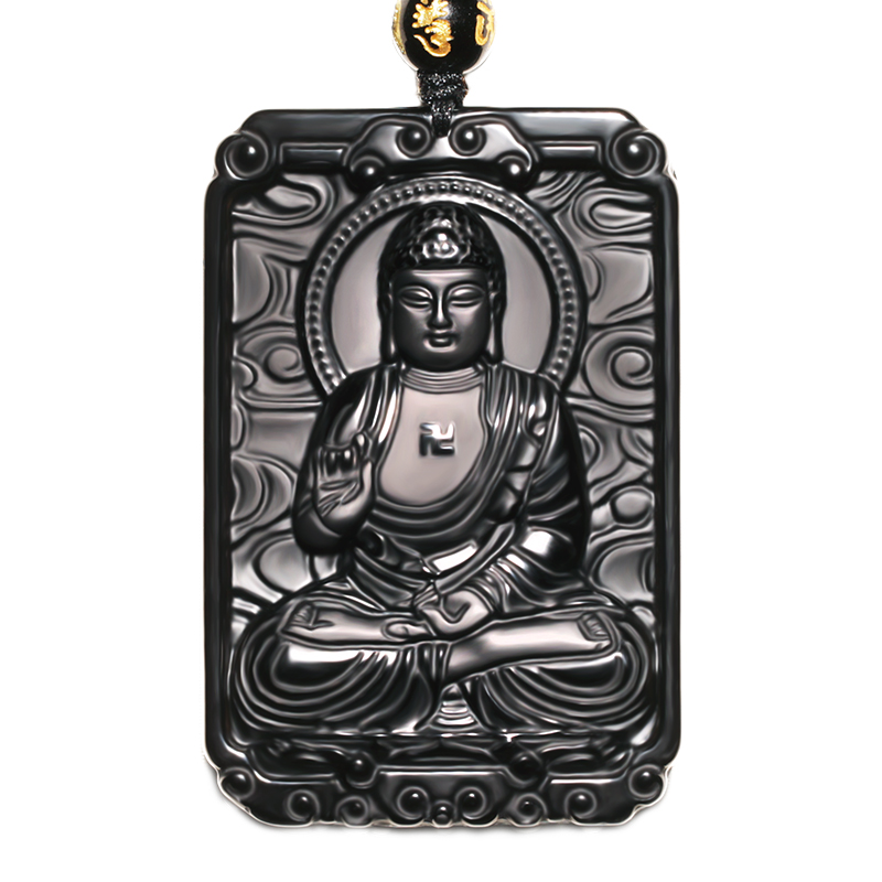 淼瑞天然黑曜石吊坠官方旗舰店本命佛挂件本命年生肖项链无事牌