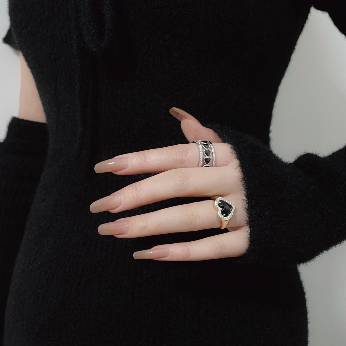 Willa|复古黑色爱心戒指2022年新款潮小众设计感时尚个性食指戒