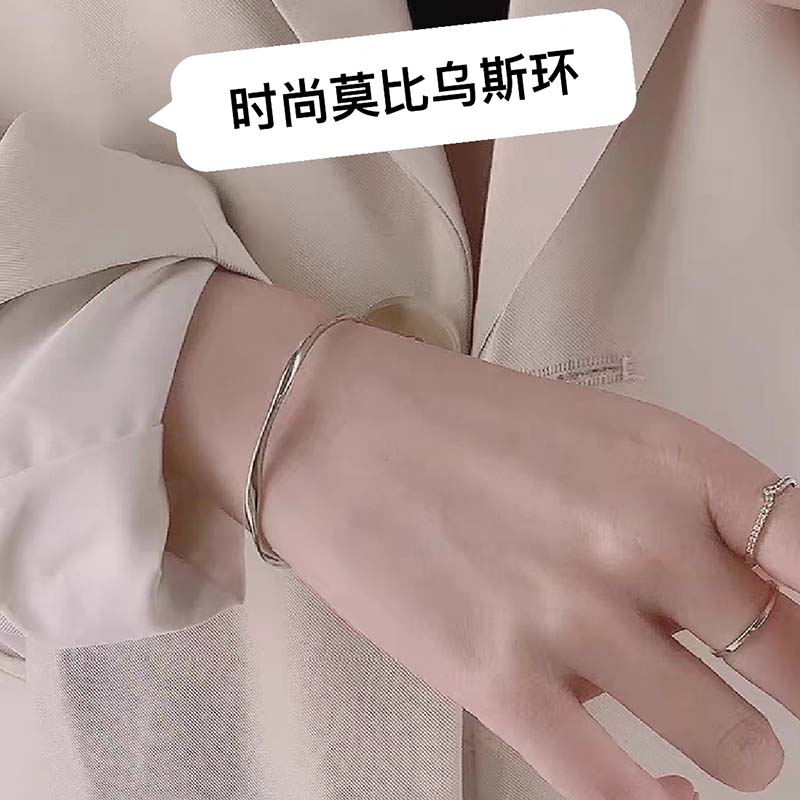 永记银铺999纯银莫比乌斯环银手镯学生足银手环时尚小众设计手工