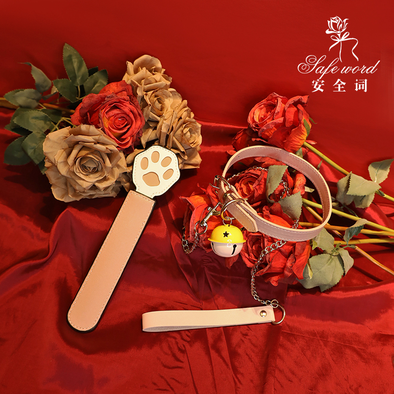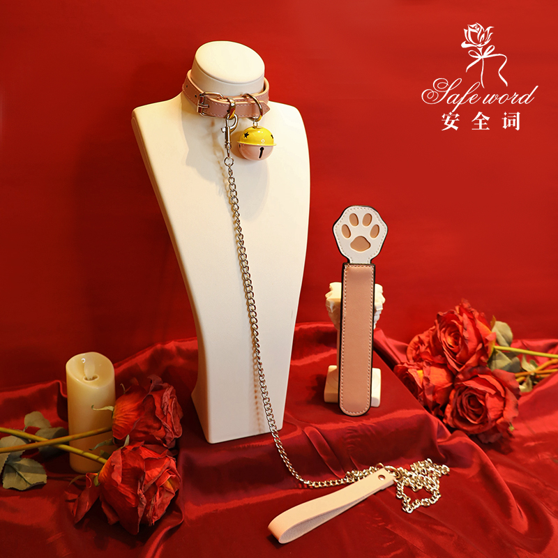 皮质puppy铃铛项圈带牵引绳小众choker设计项链粉色系小猫爪套装