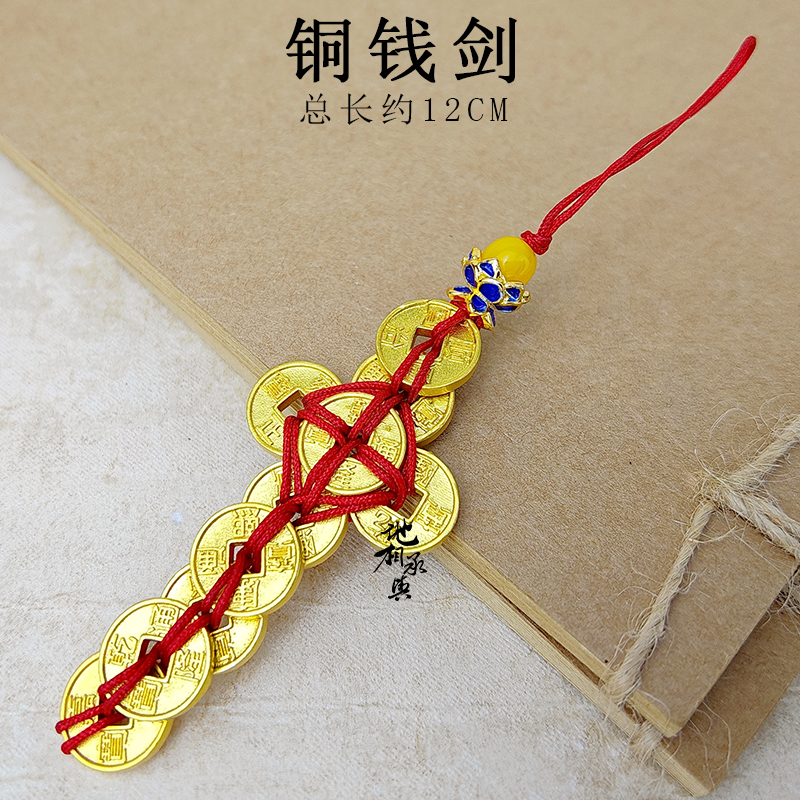 黄铜五帝钱加厚迷你款 铜钱剑 化门对门随身便携挂件钥匙扣手机链