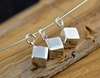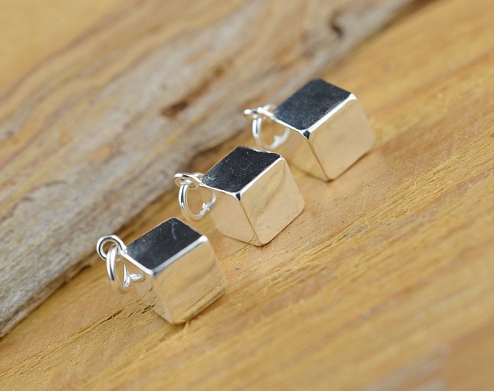 925纯银首饰配件 光面方块吊坠挂坠 手工DIY串珠材料自制手链配饰