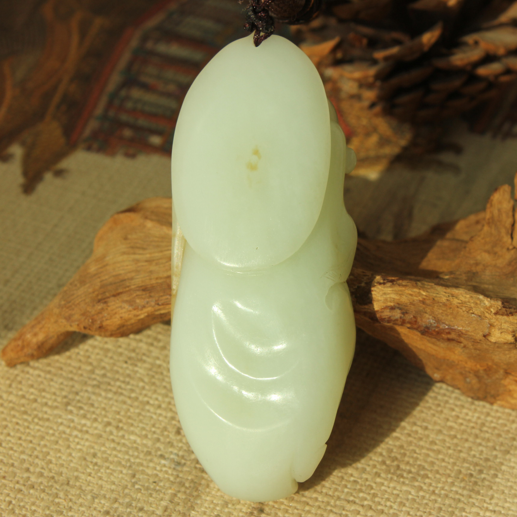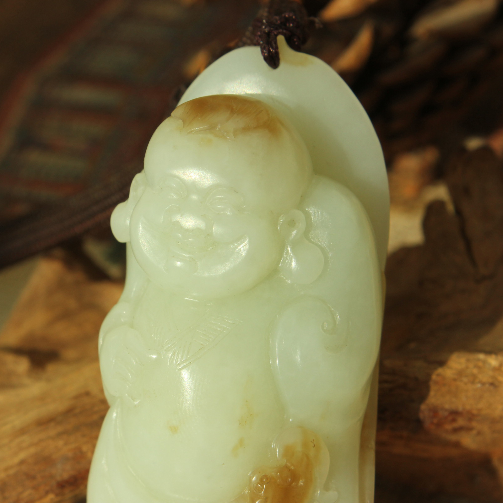 王实斋珠宝/新疆和田玉糖白玉童子送财玩件手把挂件润度好精158