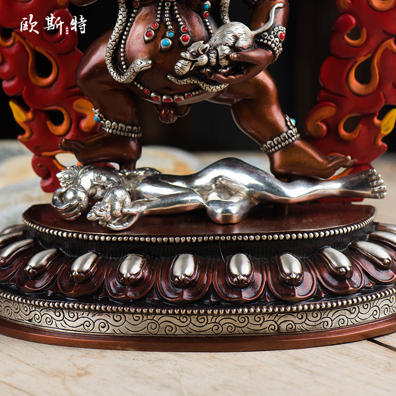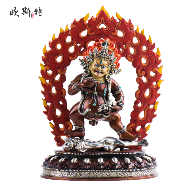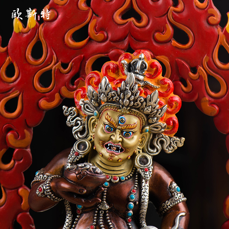 欧斯特 西藏《黑财神摆件》家居用品 8寸紫铜镀银五路财神像铜像